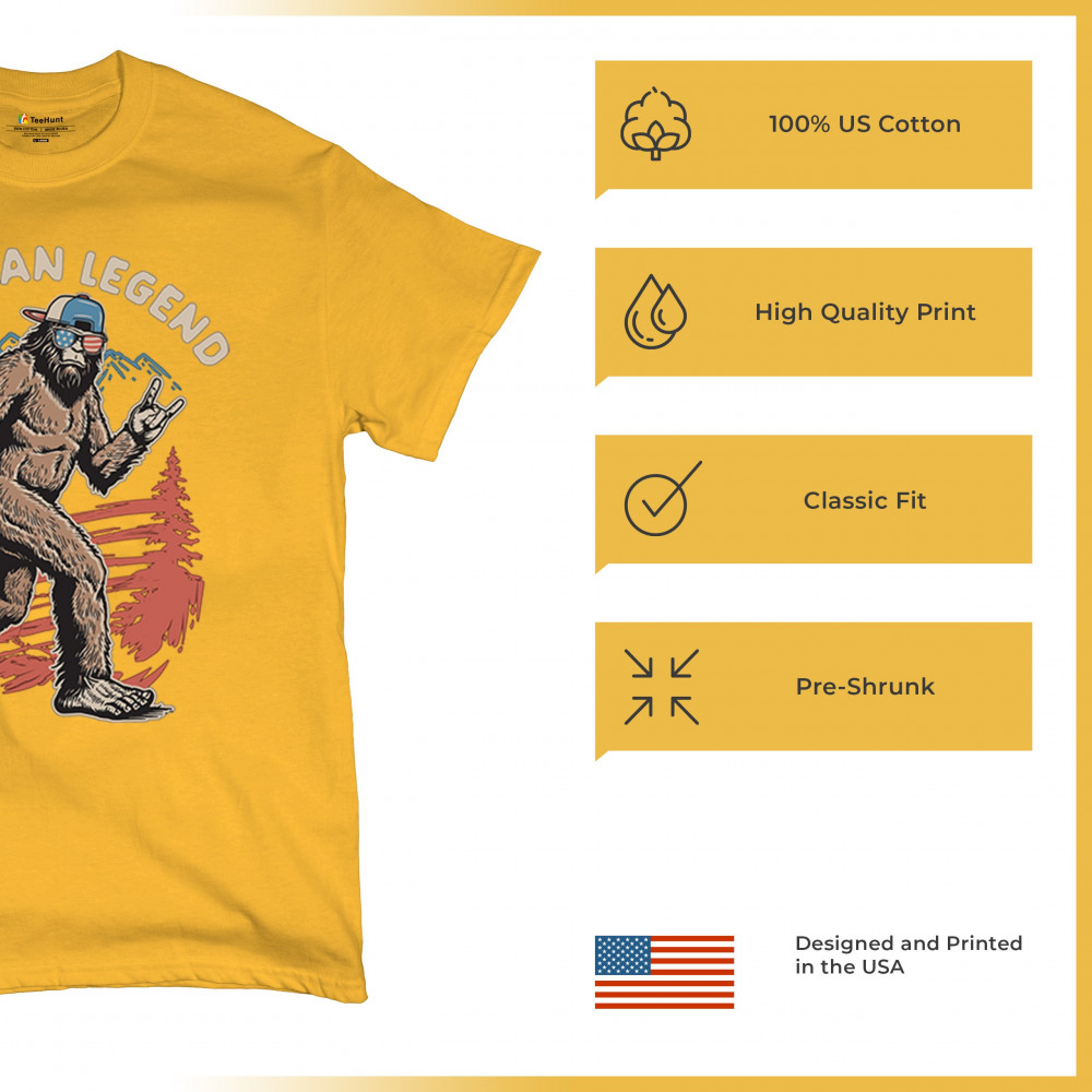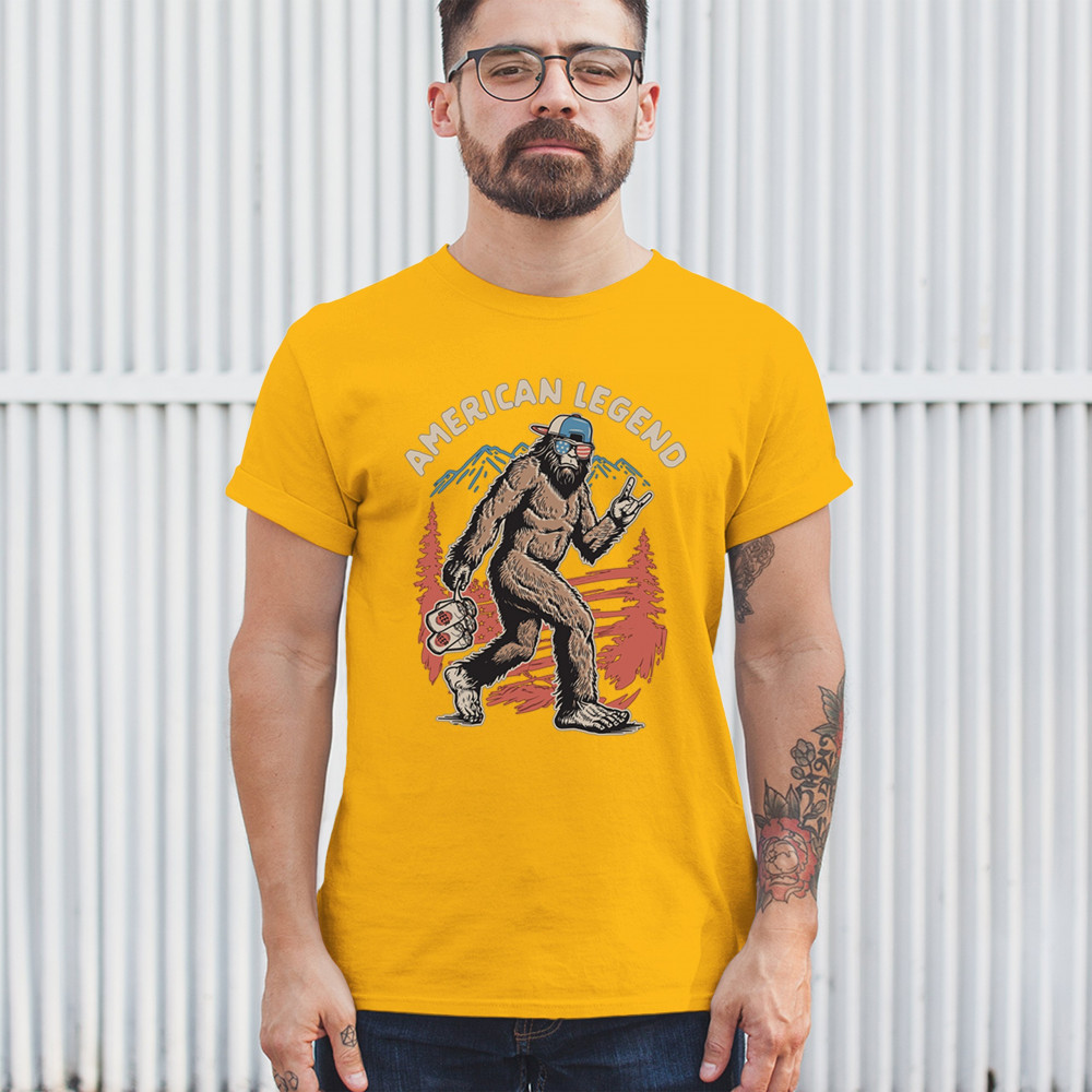 Bigfoot becomes the life of the patriotic party in this hilarious design featuring USA shades and a six-pack of beer. Perfect for barbecues, tailgates, and camping trips, it’s ideal for cryptid lovers, beer fans, and proud Americans. Great for Fourth of July celebrations or gifting the outdoorsman who has everything.