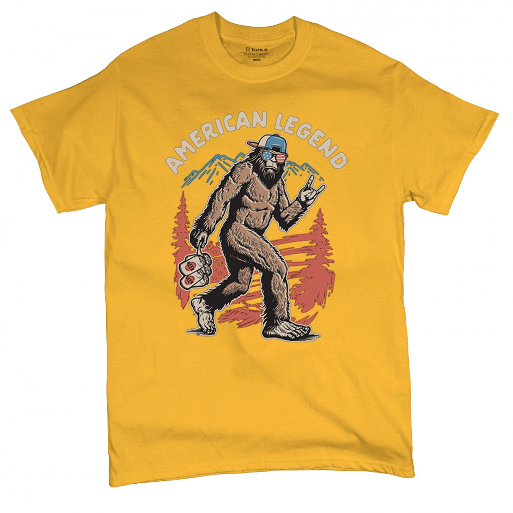 Funny Bigfoot design with patriotic flair—ideal for BBQs, beer lovers, campers, and cryptid fans who love to party in style!