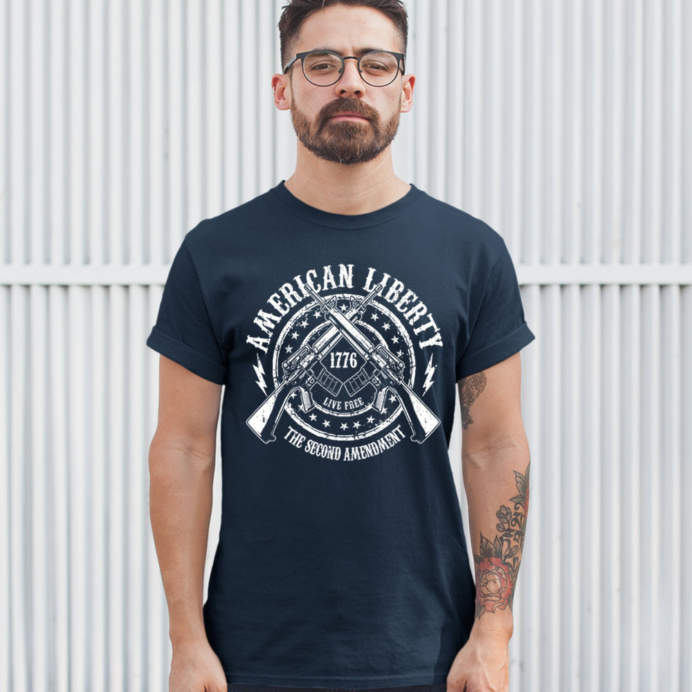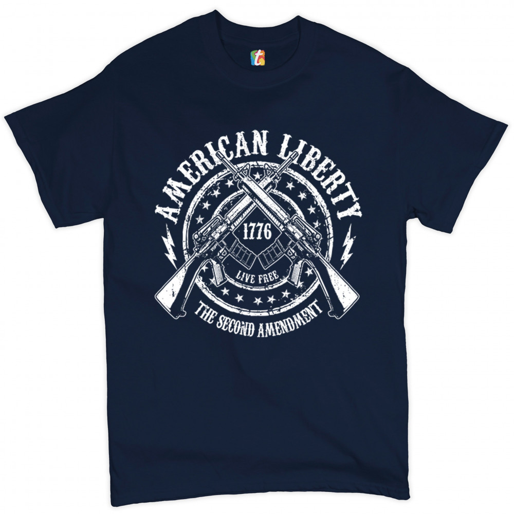 AMERICAN LIBERTY LIVE FREE t-shirt the 2nd amendment 1776 ar-15 men's tee navy blue