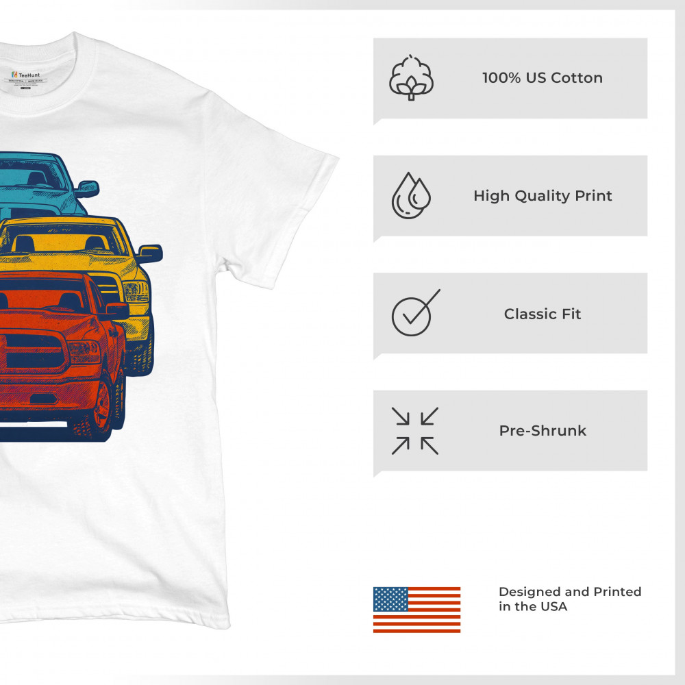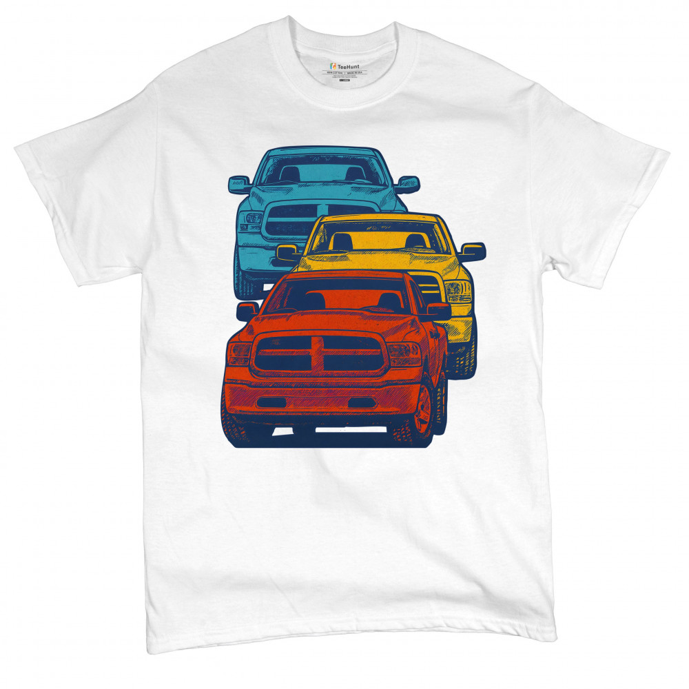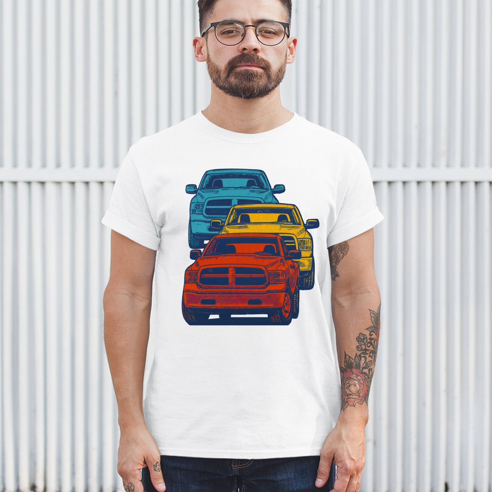 Boldly stacked and powerfully styled, this multicolor truck design showcases red, yellow, and blue pickups in a vertical formation. Made for fans of lifted truck culture, horsepower, and off-road pride, it celebrates diesel grit, road attitude, and the spirit of truck meets and gearhead unity.