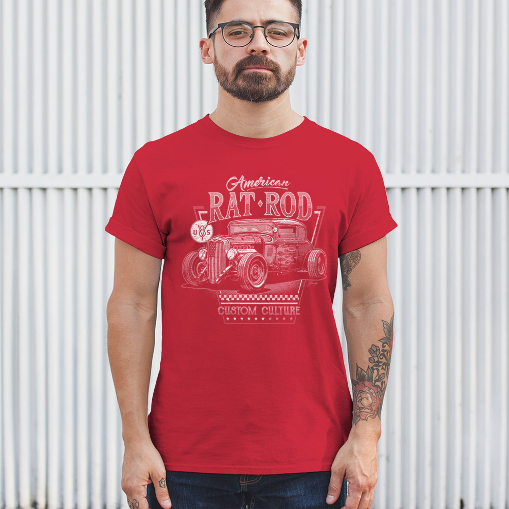 Celebrate American custom culture with this unique rat rod design, perfect for car enthusiasts and hot rod fans. Bold, stylish, and ideal for everyday wear.