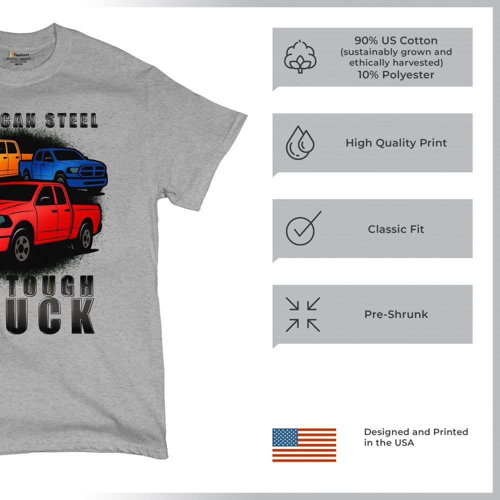 Celebrate the power of American steel with this rugged design featuring three bold pickup trucks in red, yellow, and blue. Made for gearheads, road warriors, and those who respect durability and performance. Perfect for truck shows, off-road events, and meetups.