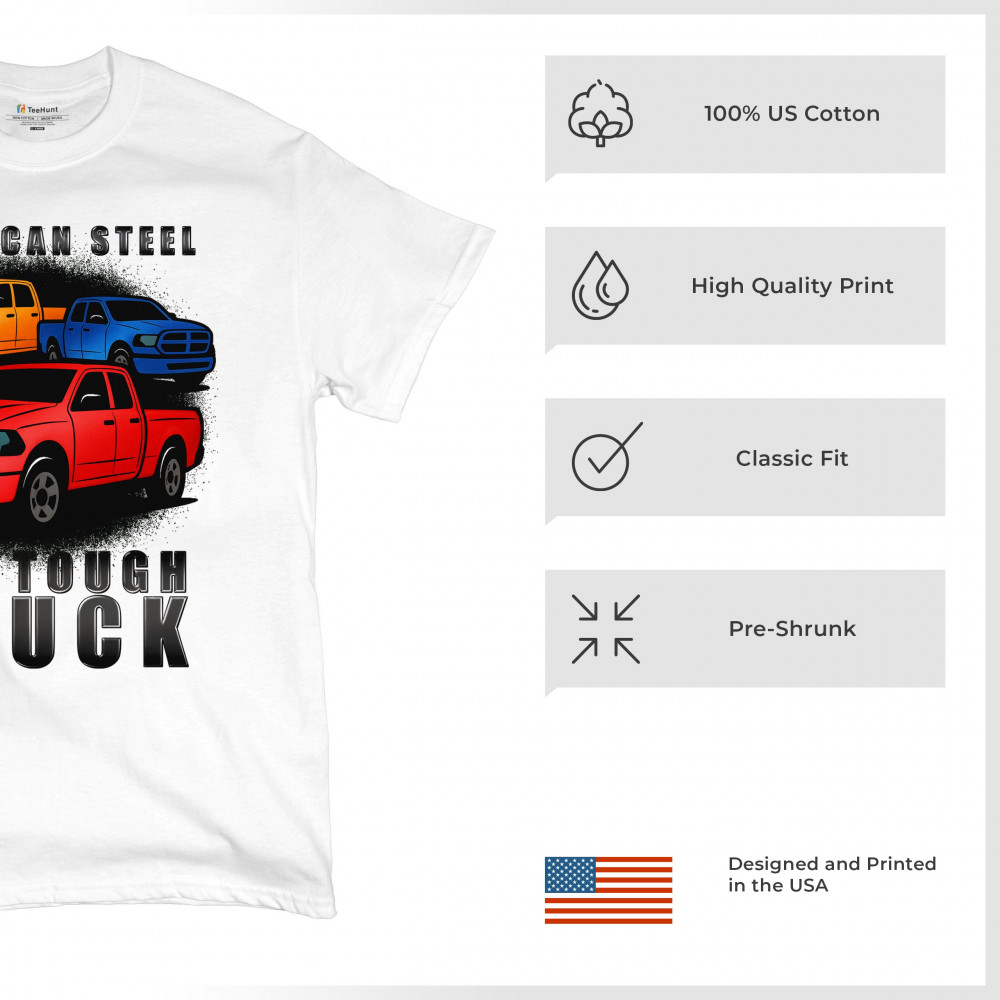 Celebrate the power of American steel with this rugged design featuring three bold pickup trucks in red, yellow, and blue. Made for gearheads, road warriors, and those who respect durability and performance. Perfect for truck shows, off-road events, and meetups.