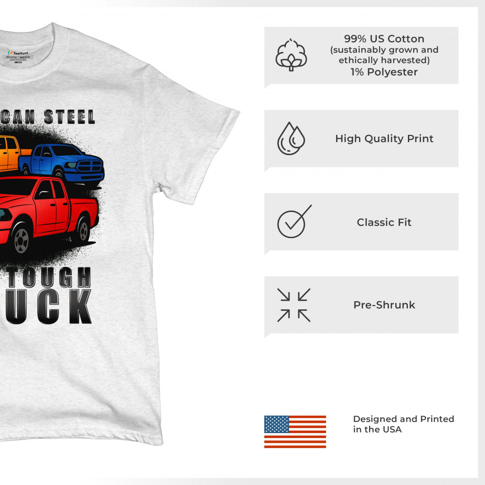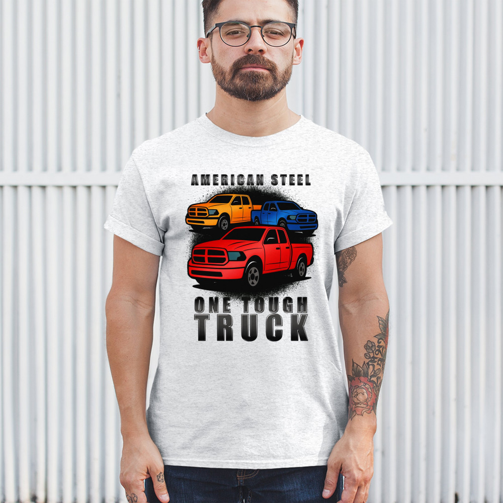 Celebrate the power of American steel with this rugged design featuring three bold pickup trucks in red, yellow, and blue. Made for gearheads, road warriors, and those who respect durability and performance. Perfect for truck shows, off-road events, and meetups.
