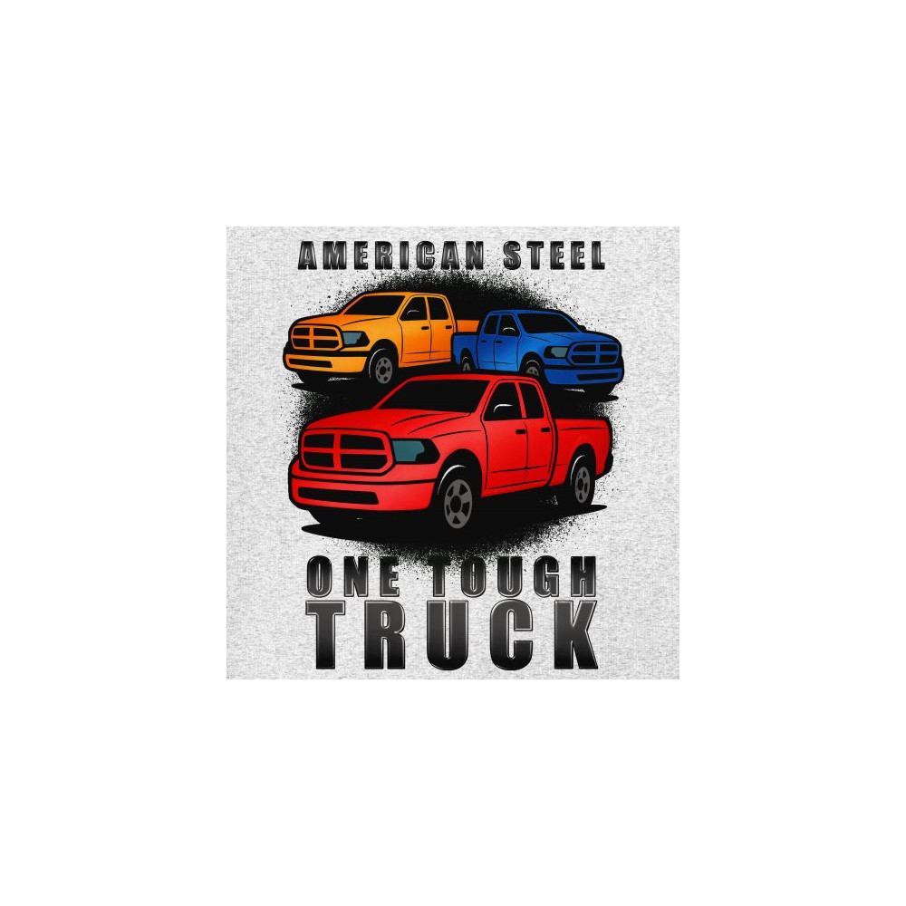 Bold truck design with red, yellow, and blue pickups. Built for fans of American steel, tough performance, and road warrior pride.