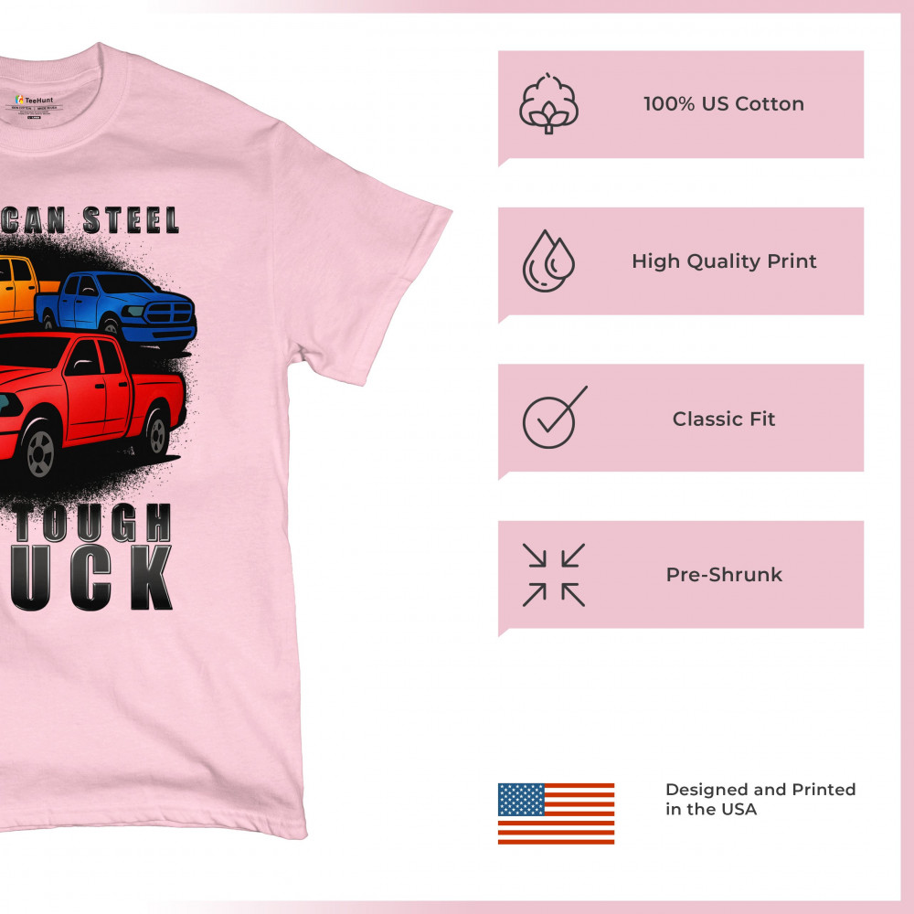 Celebrate the power of American steel with this rugged design featuring three bold pickup trucks in red, yellow, and blue. Made for gearheads, road warriors, and those who respect durability and performance. Perfect for truck shows, off-road events, and meetups.