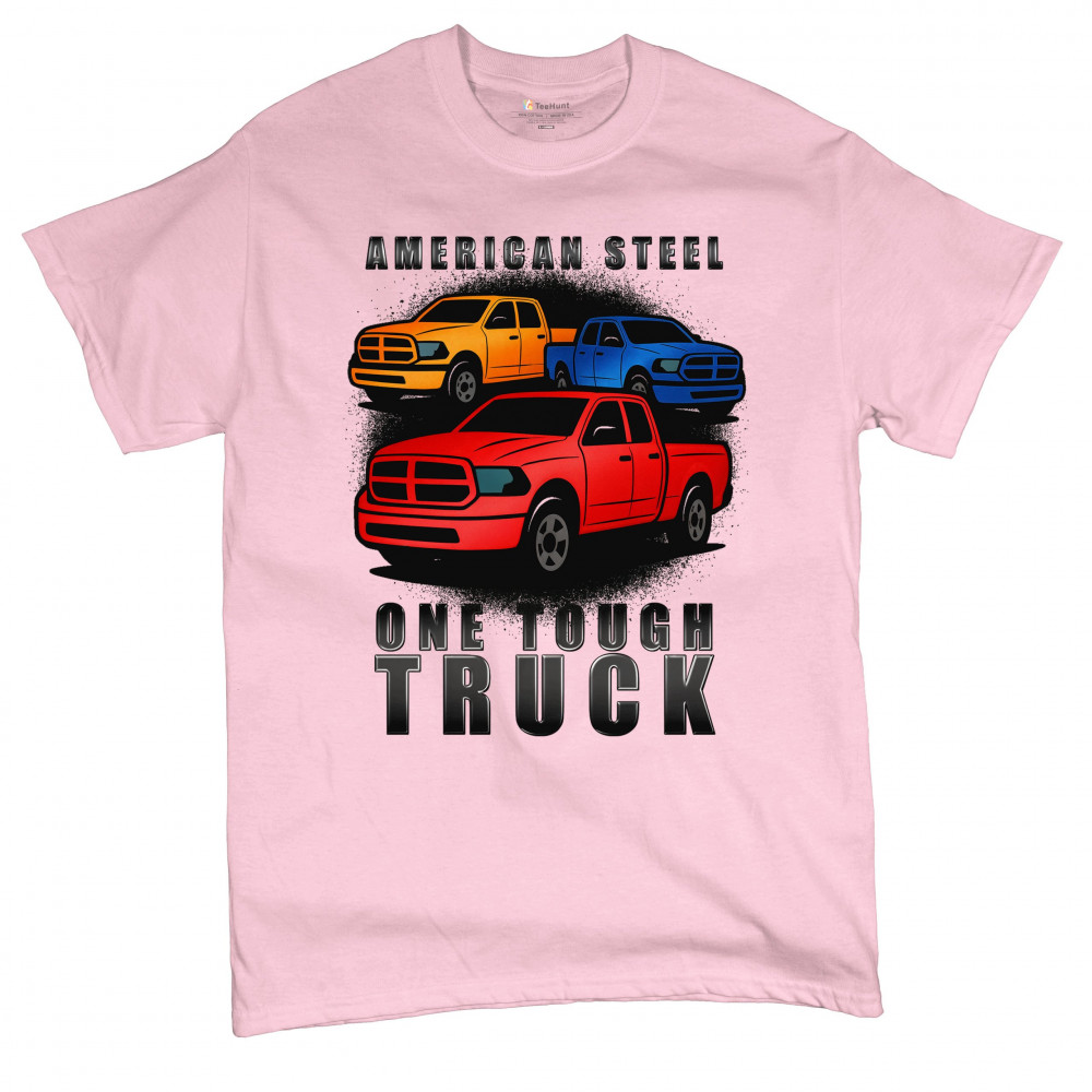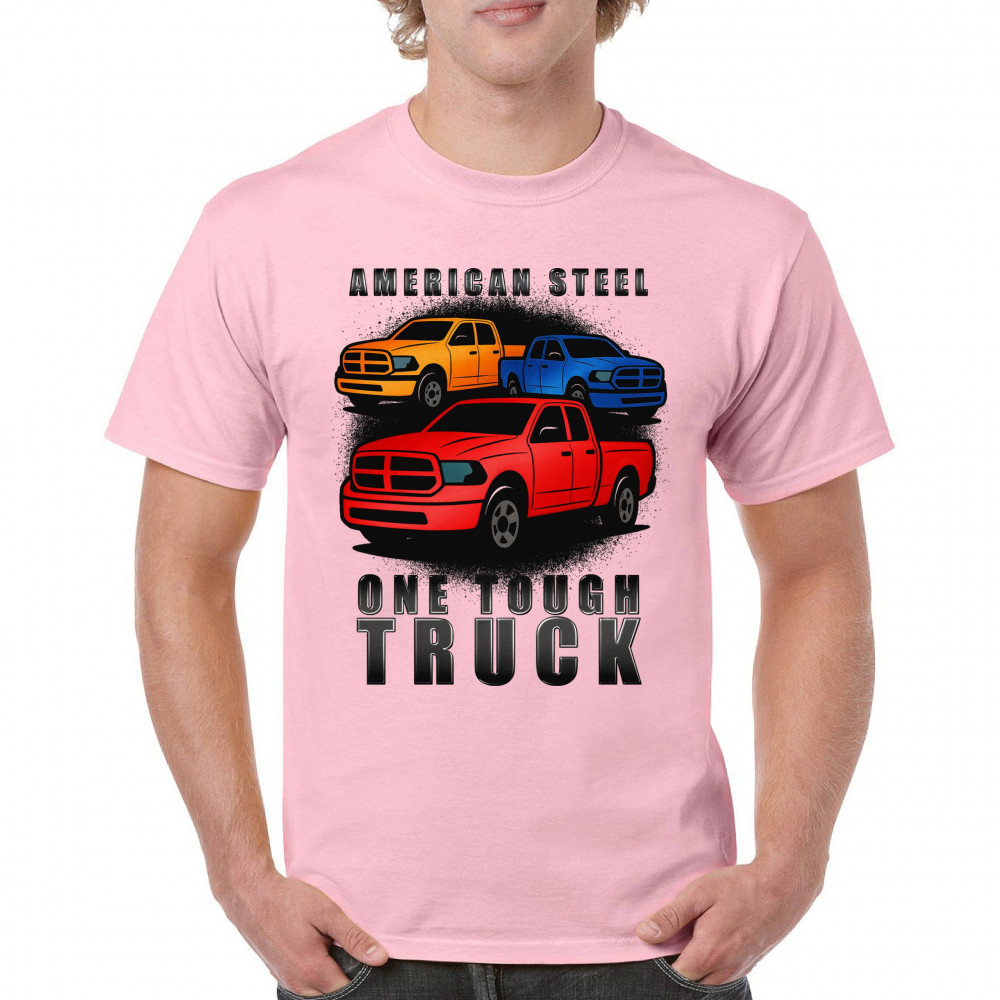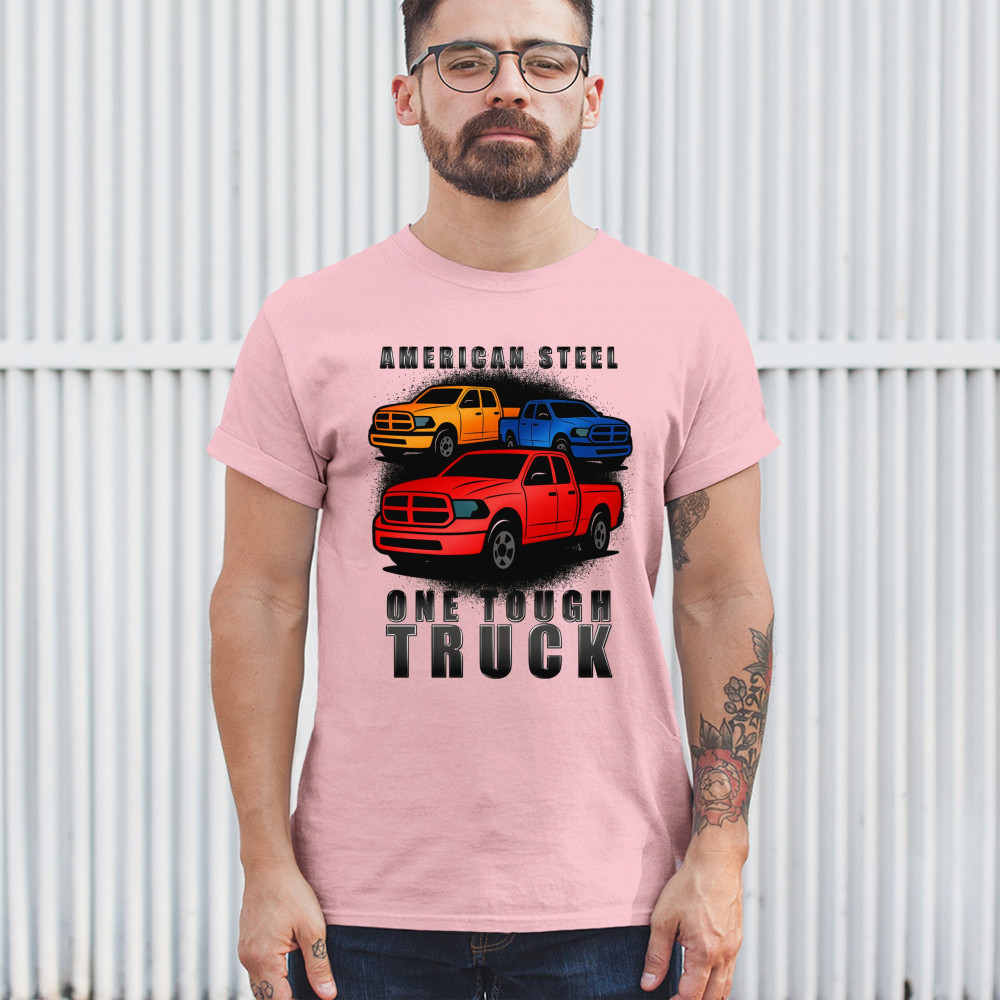 Bold truck design with red, yellow, and blue pickups. Built for fans of American steel, tough performance, and road warrior pride.