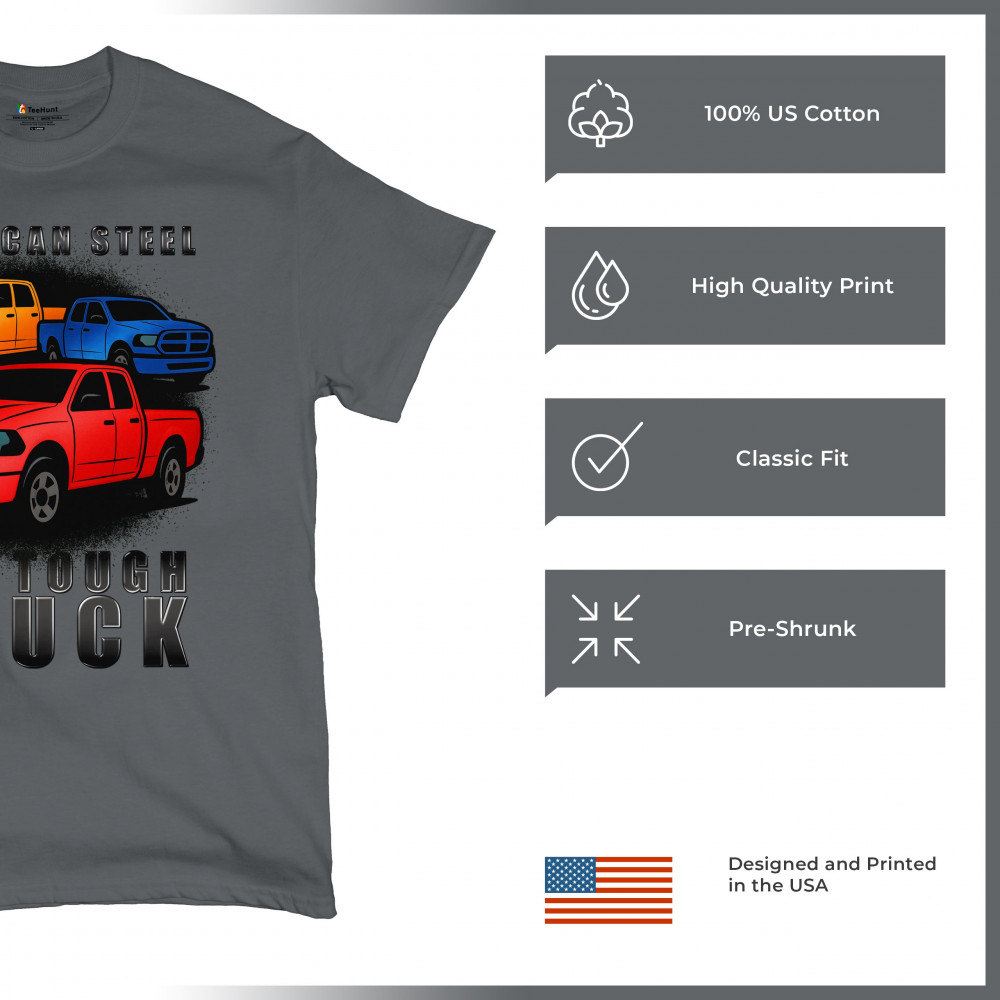 Celebrate the power of American steel with this rugged design featuring three bold pickup trucks in red, yellow, and blue. Made for gearheads, road warriors, and those who respect durability and performance. Perfect for truck shows, off-road events, and meetups.