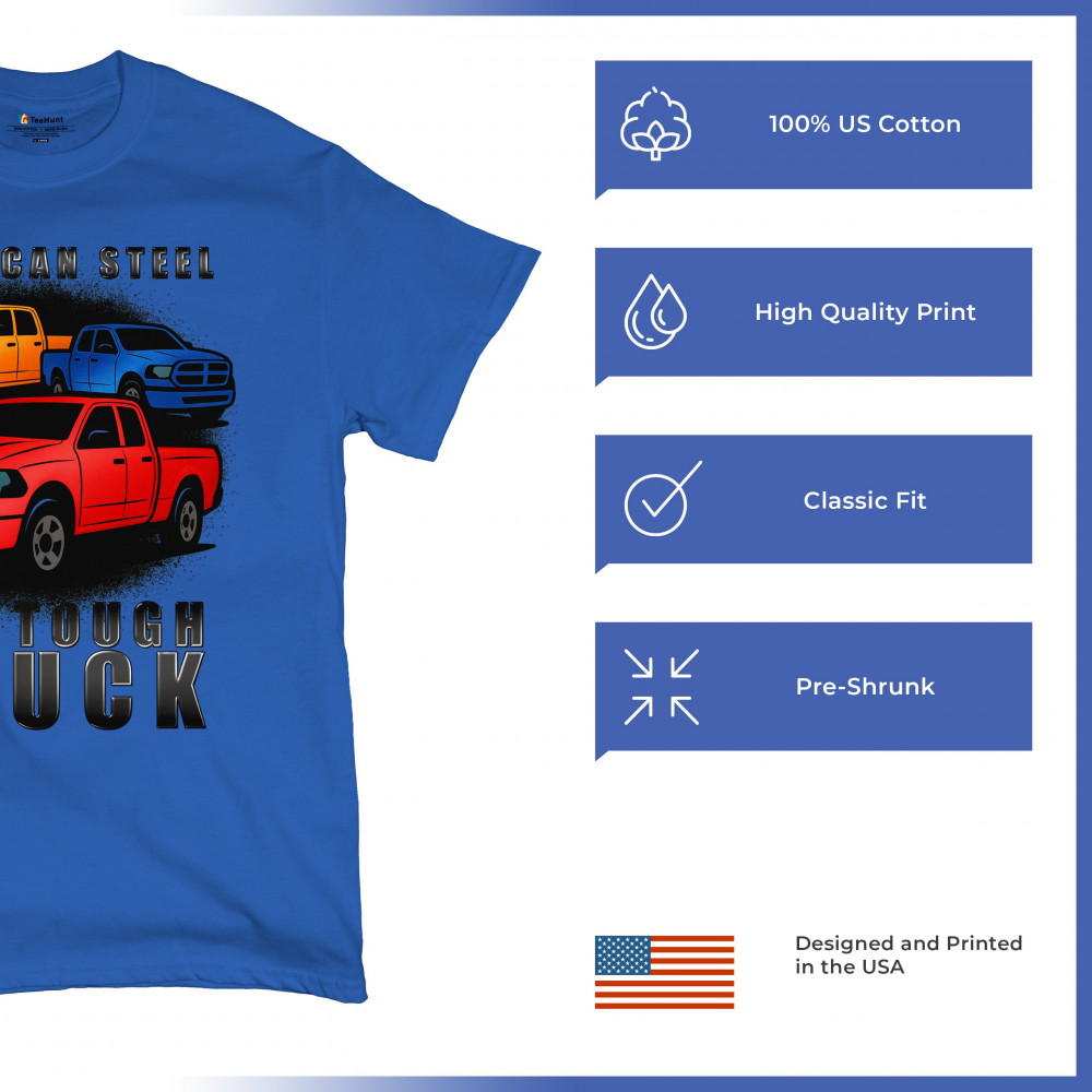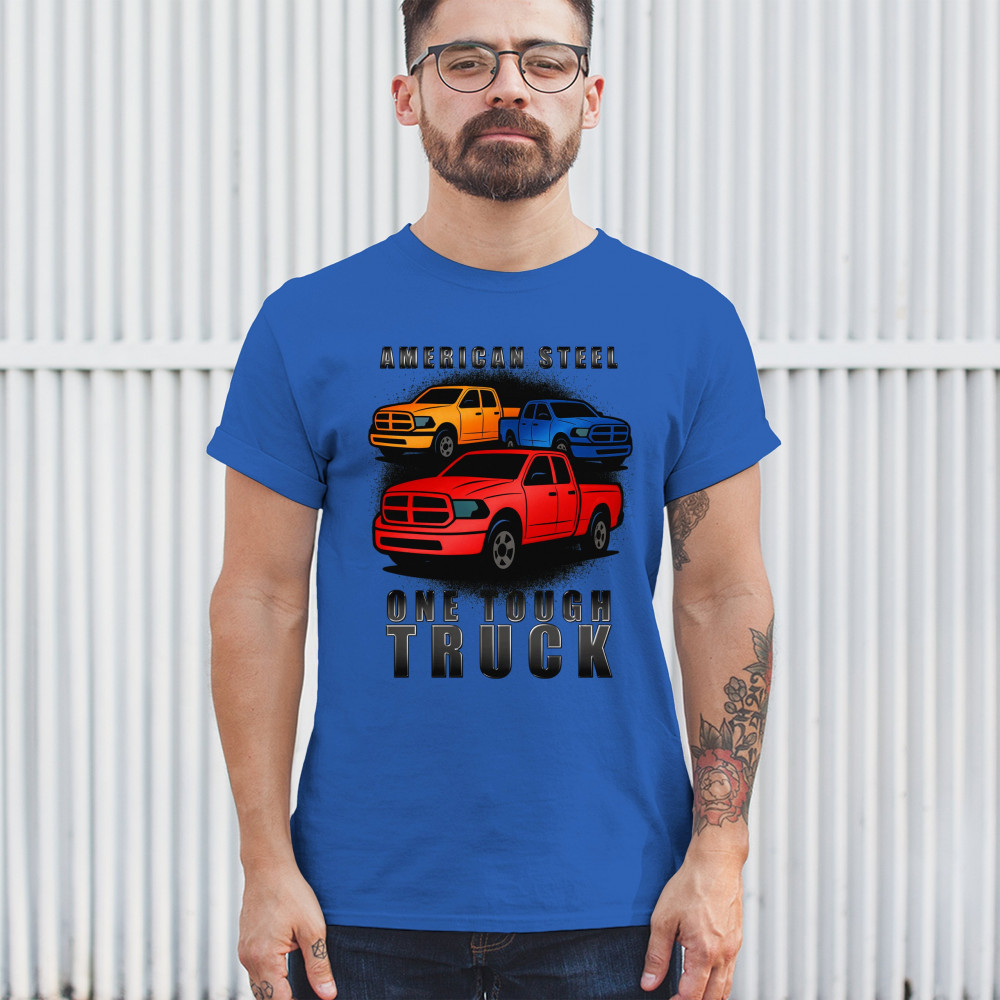 Celebrate the power of American steel with this rugged design featuring three bold pickup trucks in red, yellow, and blue. Made for gearheads, road warriors, and those who respect durability and performance. Perfect for truck shows, off-road events, and meetups.