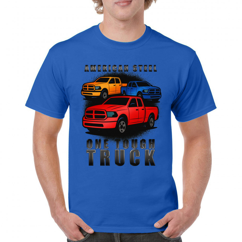 Bold truck design with red, yellow, and blue pickups. Built for fans of American steel, tough performance, and road warrior pride.