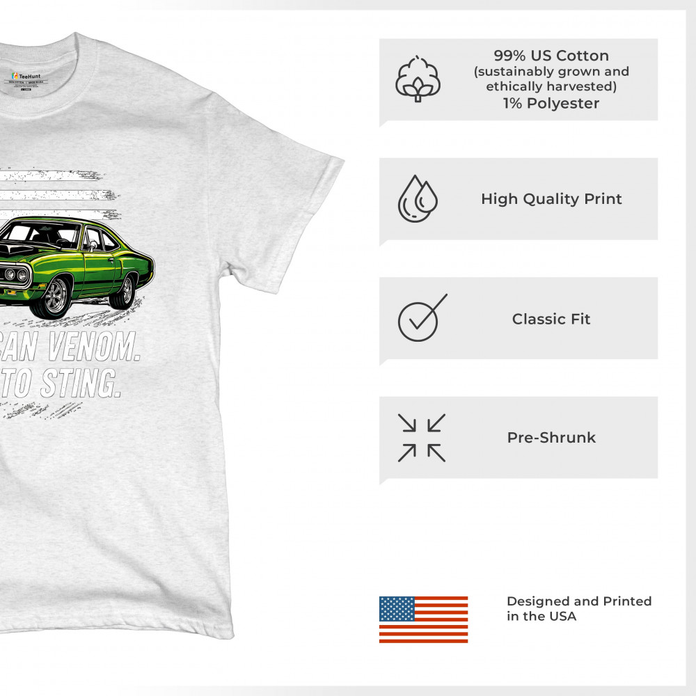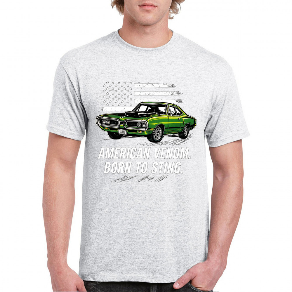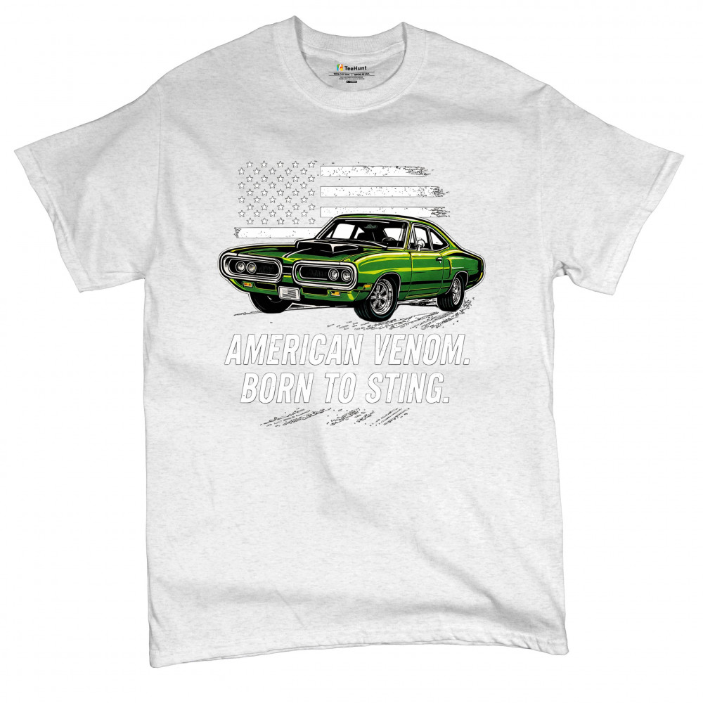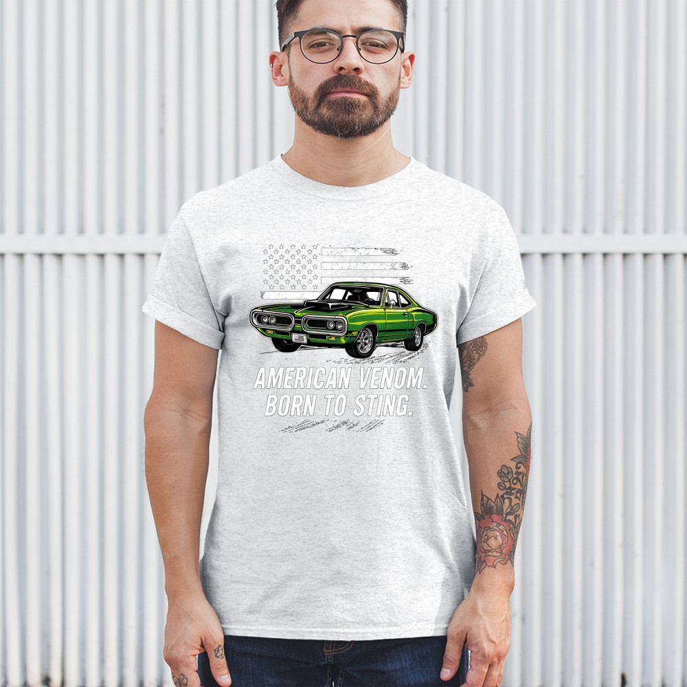 Inject venom into your street style with this bold green muscle car design. With “Born to Sting†power and a backdrop of American pride, this graphic is perfect for Scat fans, gearheads, and drivers who embrace speed, dominance, and the sound of true muscle. Rule car meets, rev battles, and highway runs with unmatched attitude.