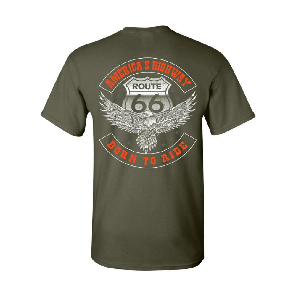 AMERICA'S HIGHWAY t-shirt born to ride route 66 biker mc chopper mens tee shirt military green