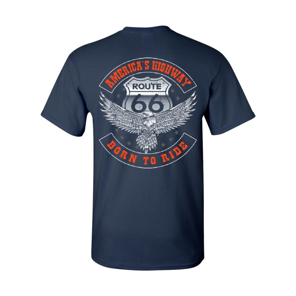 AMERICA'S HIGHWAY t-shirt born to ride route 66 biker mc chopper mens tee shirt navy blue