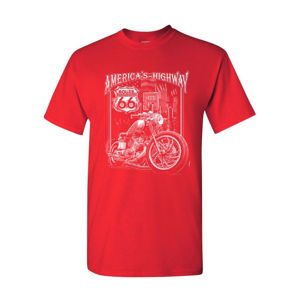 AMERICA'S HIGHWAY HISTORIC ROUTE 66 america's highway t-shirt route 66 mc motorcycle chopper bobber mens tee shirt red