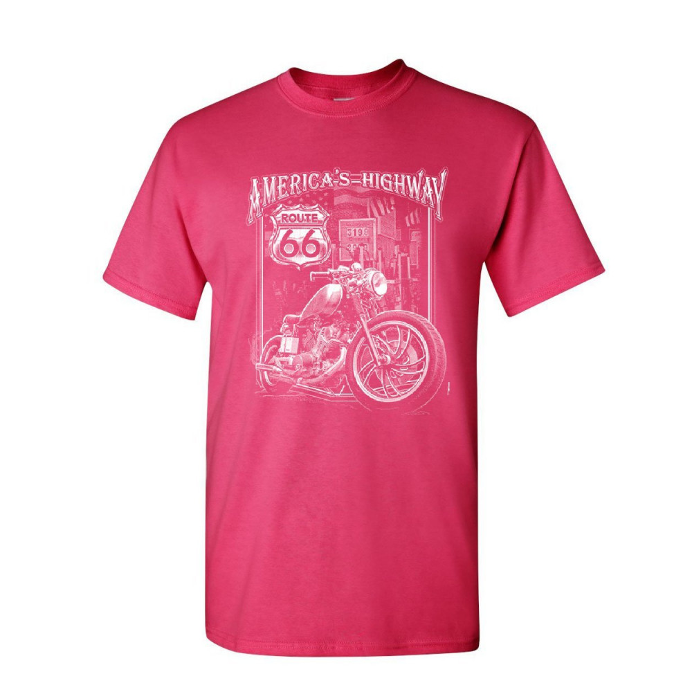 AMERICA'S HIGHWAY HISTORIC ROUTE 66 america's highway t-shirt route 66 mc motorcycle chopper bobber mens tee shirt hot pink