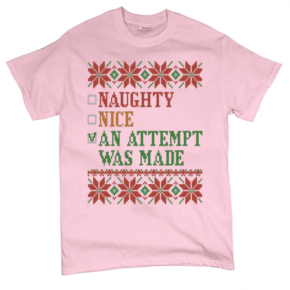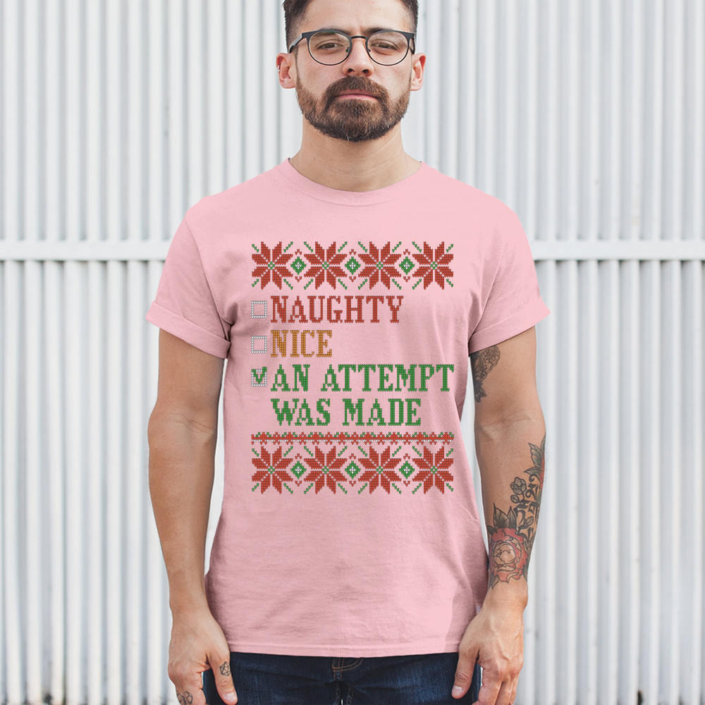 AN ATTEMPT WAS MADE t-shirt ugly sweater naughty or nice christmas men's tee light pink