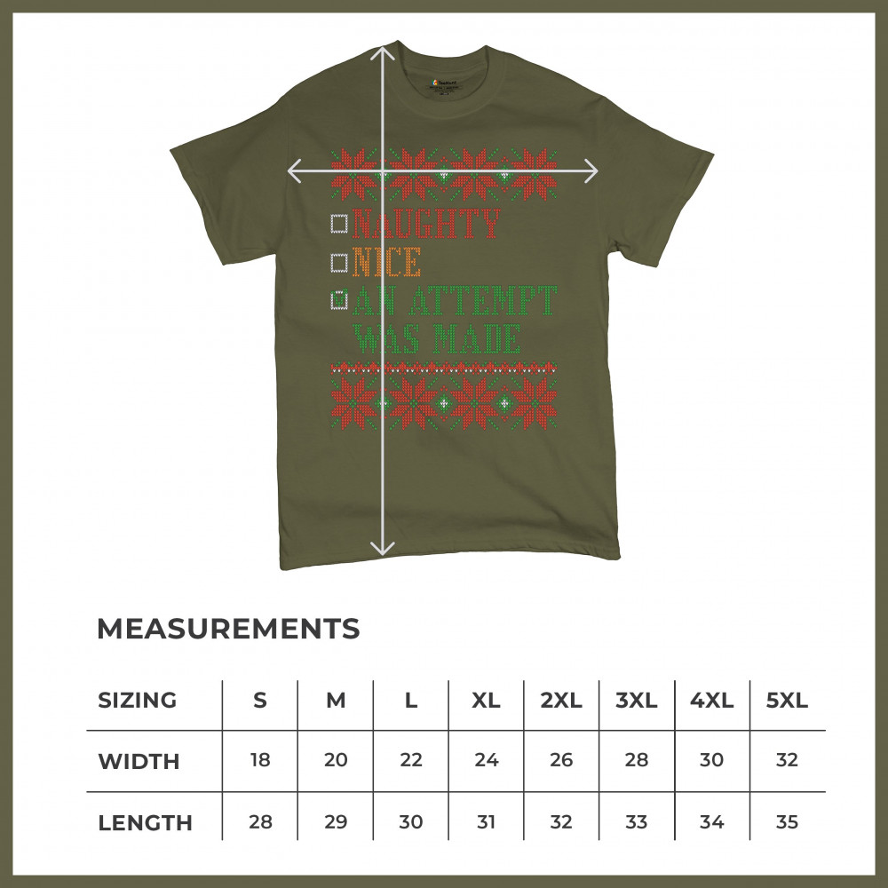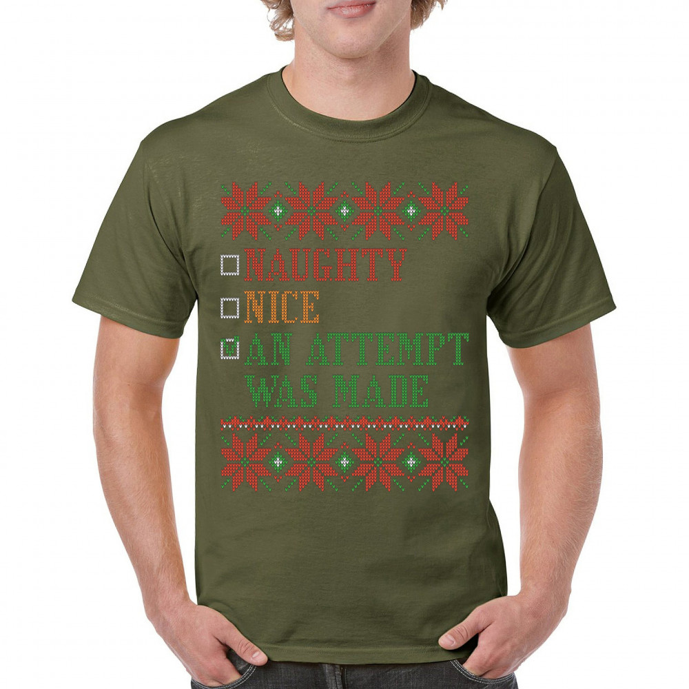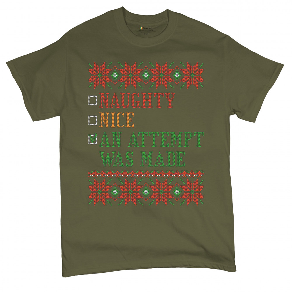 AN ATTEMPT WAS MADE t-shirt ugly sweater naughty or nice christmas men's tee military green