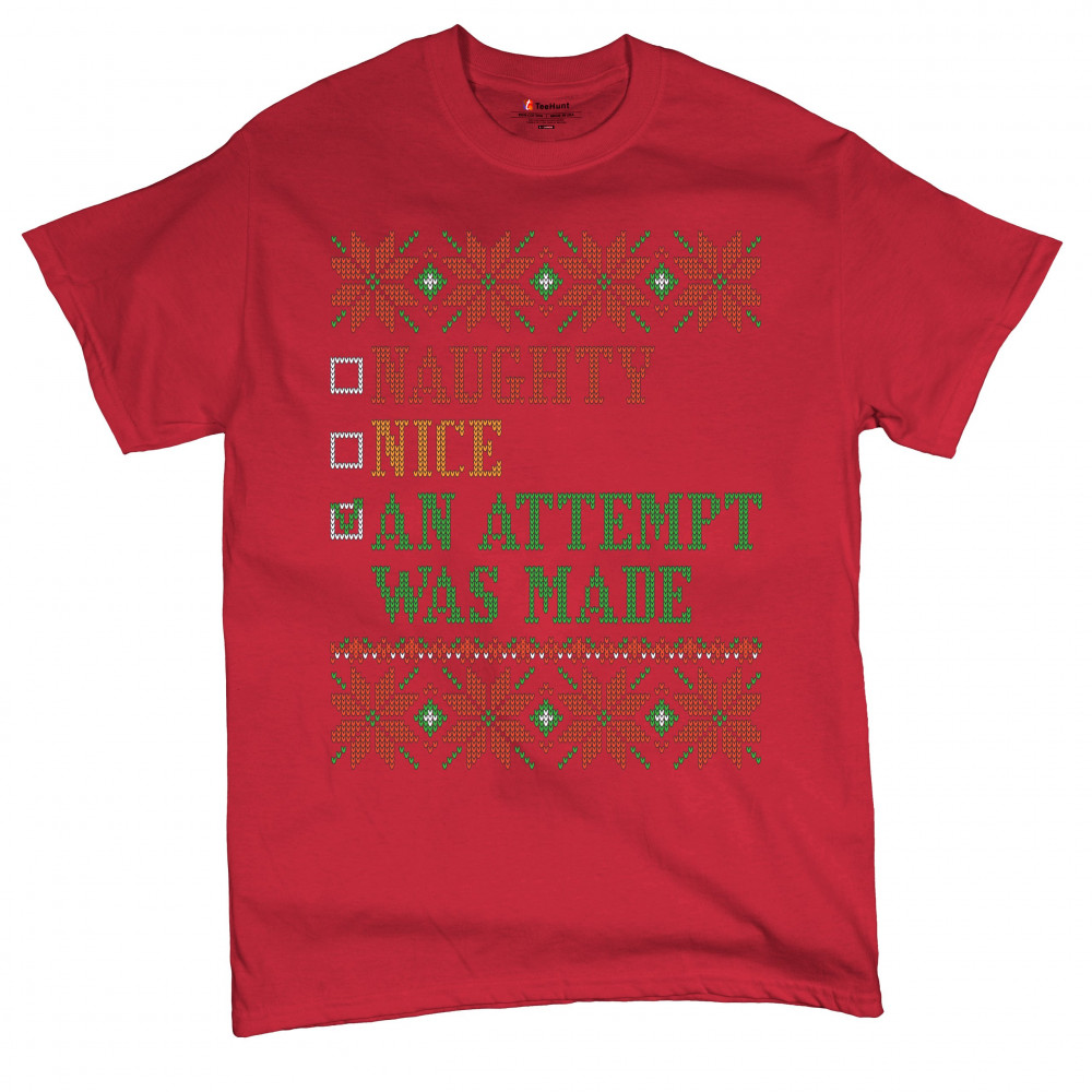 AN ATTEMPT WAS MADE t-shirt ugly sweater naughty or nice christmas men's tee red