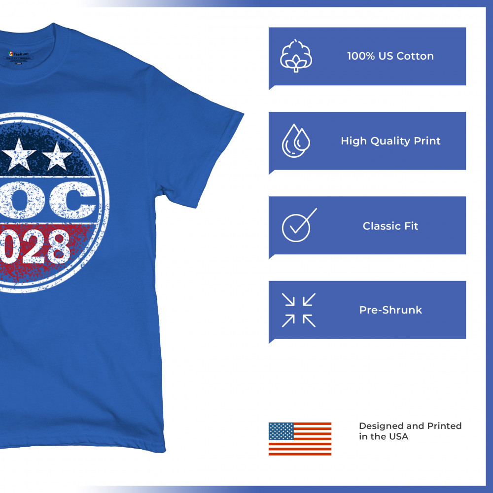 Support Alexandria Ocasio-Cortez with this bold “AOC 2028†design featuring patriotic red, white, and blue in a distressed campaign badge style. Ideal for progressive rallies, voting drives, civic events, and proud daily wear. Great for young voters, political enthusiasts, and anyone excited about the future of American leadership.