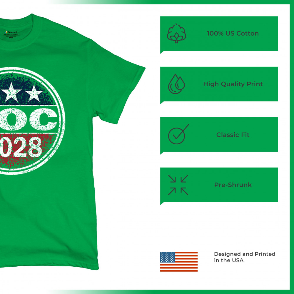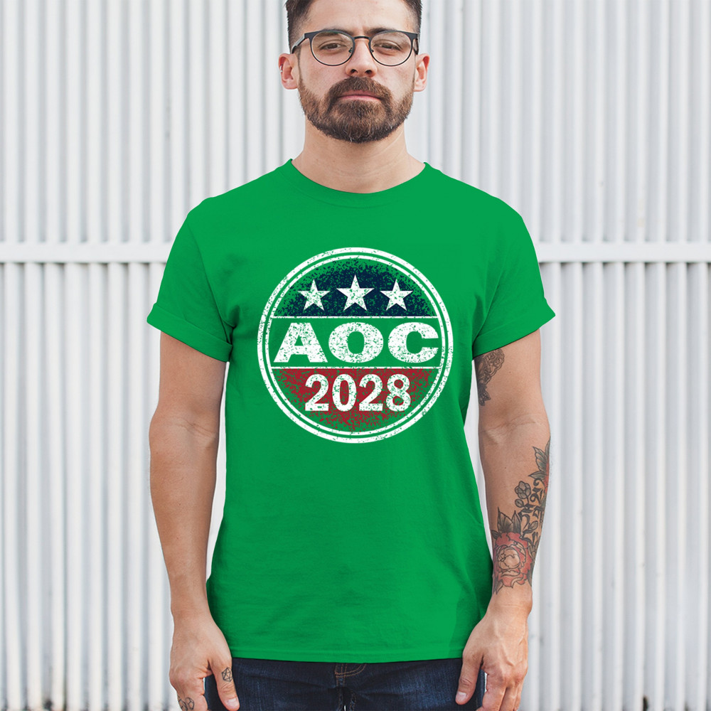 Show support for AOC 2028 with this patriotic distressed badge design. Great for progressives, rallies, events, and young political activists.