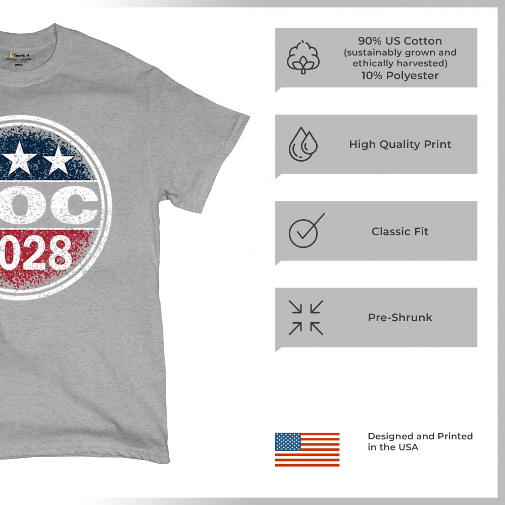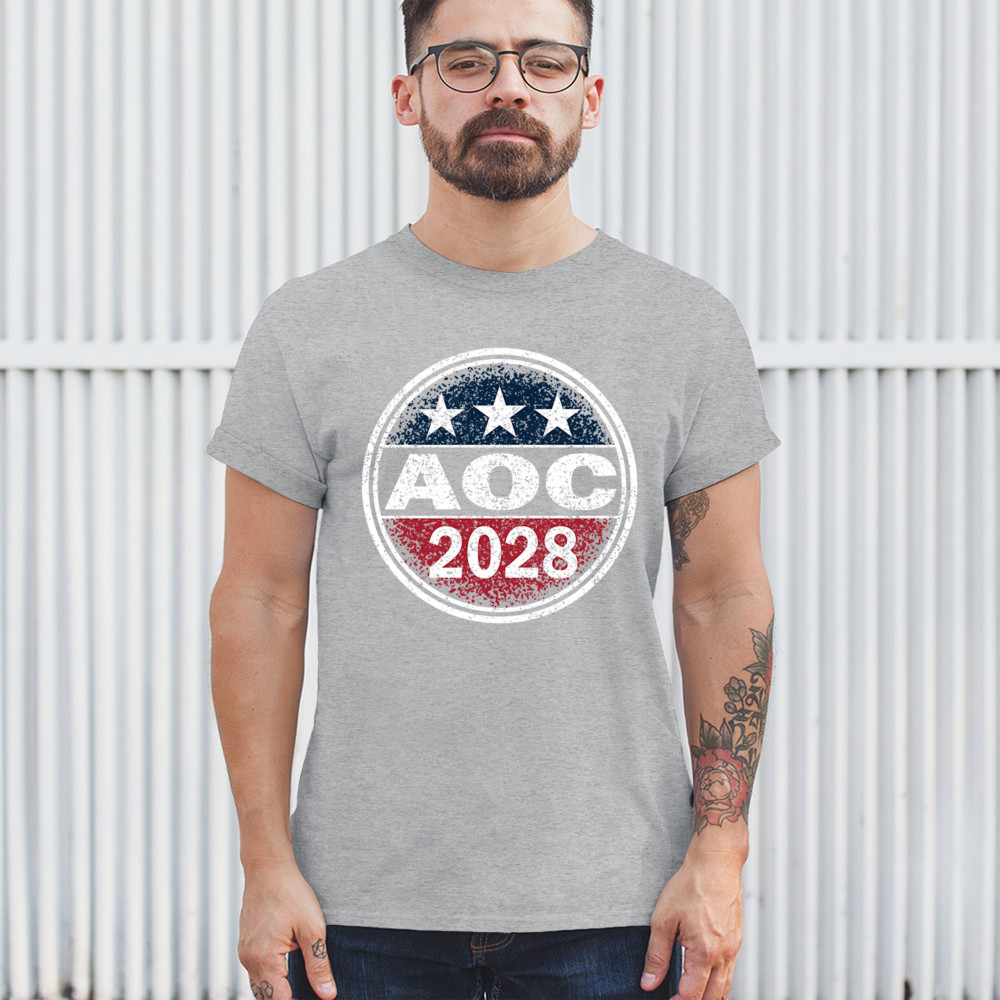 Show support for AOC 2028 with this patriotic distressed badge design. Great for progressives, rallies, events, and young political activists.