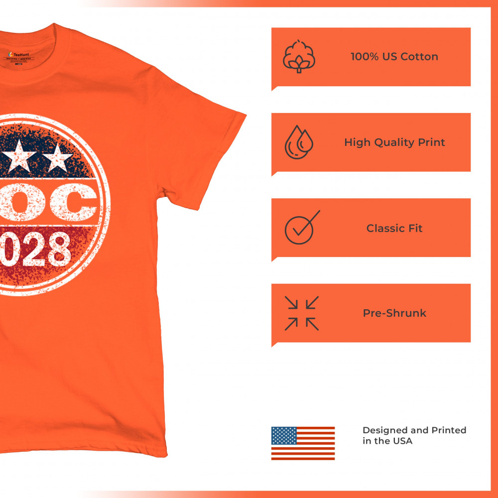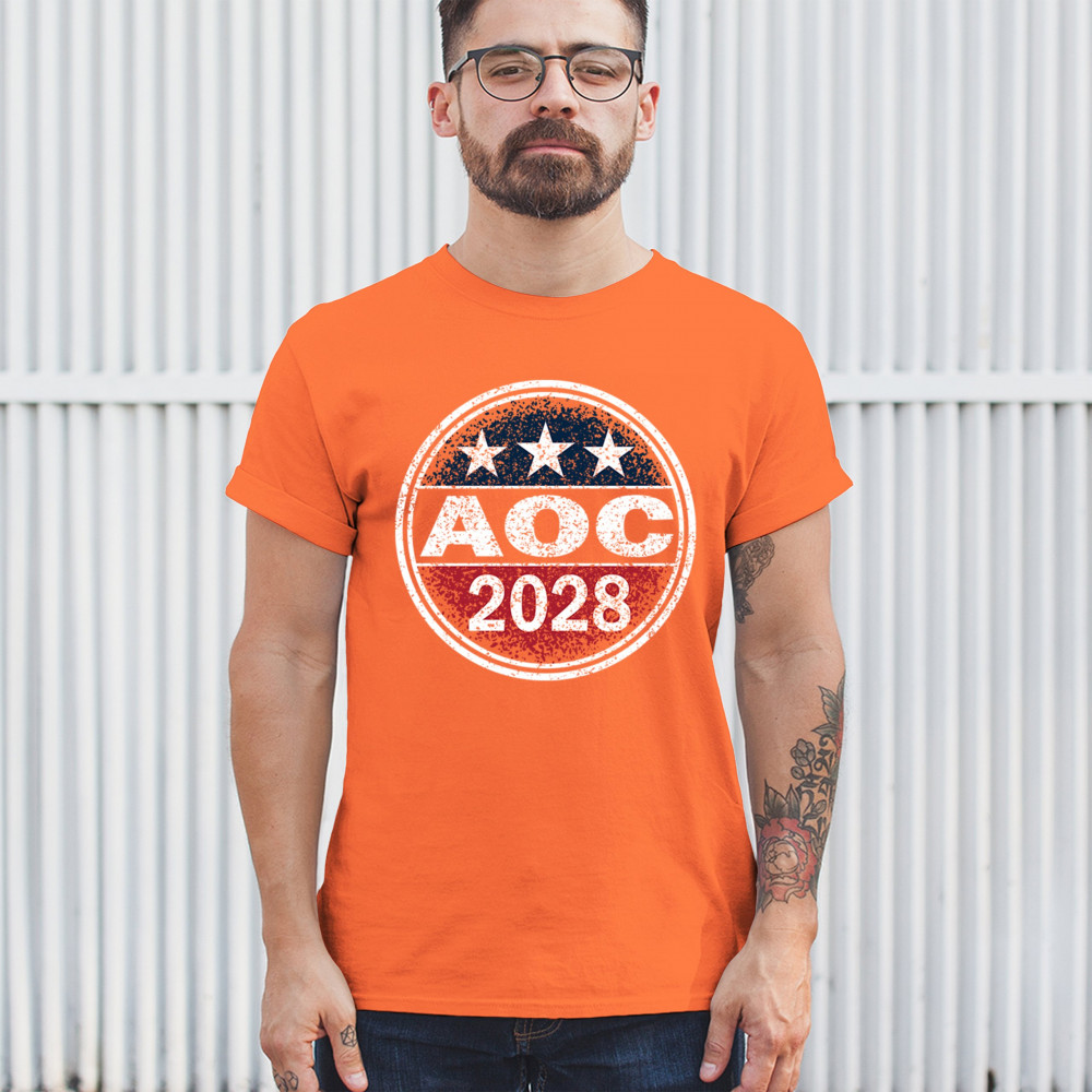 Show support for AOC 2028 with this patriotic distressed badge design. Great for progressives, rallies, events, and young political activists.