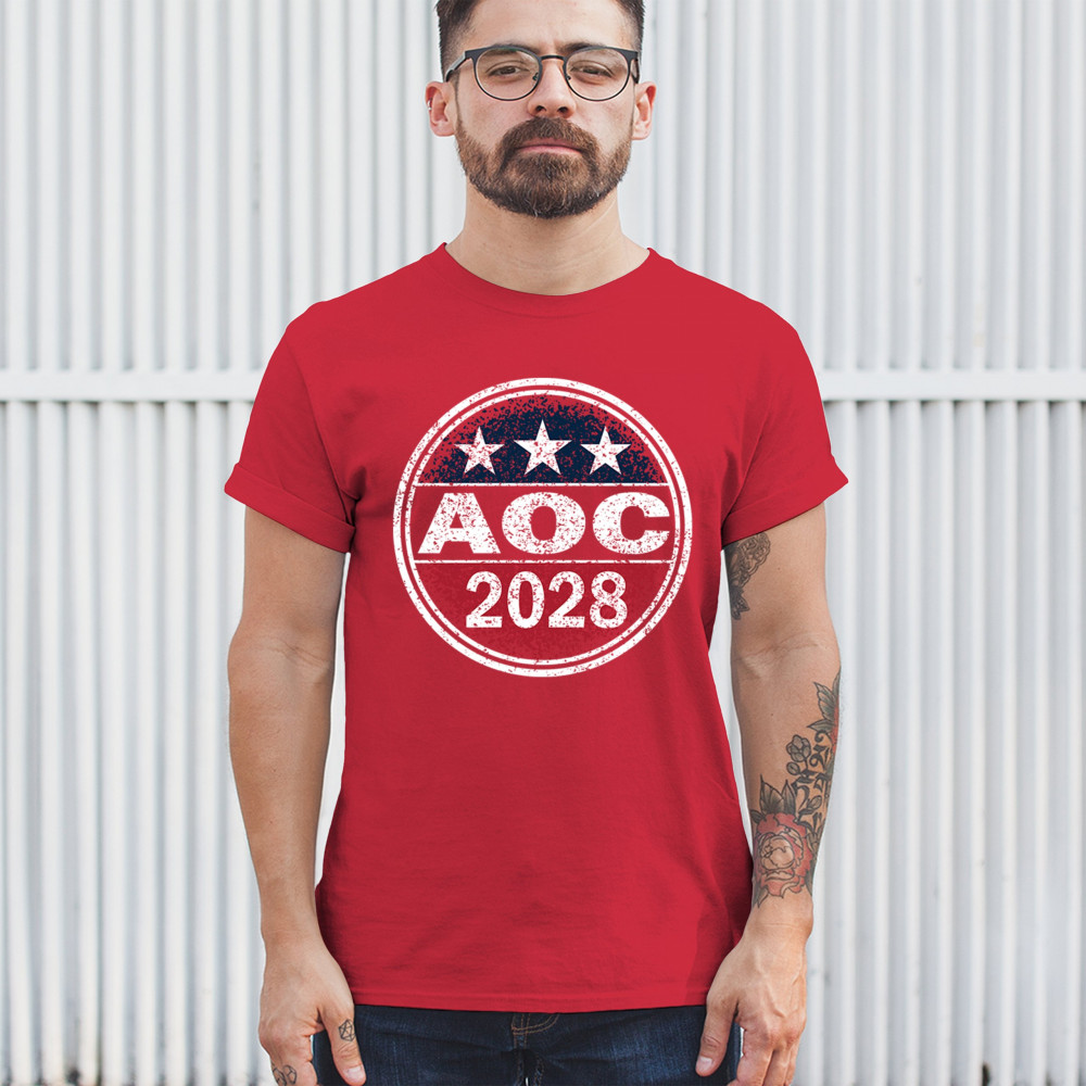 Show support for AOC 2028 with this patriotic distressed badge design. Great for progressives, rallies, events, and young political activists.
