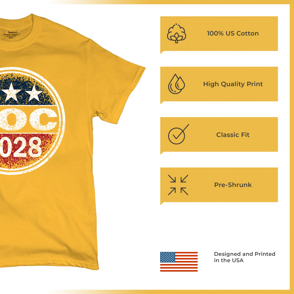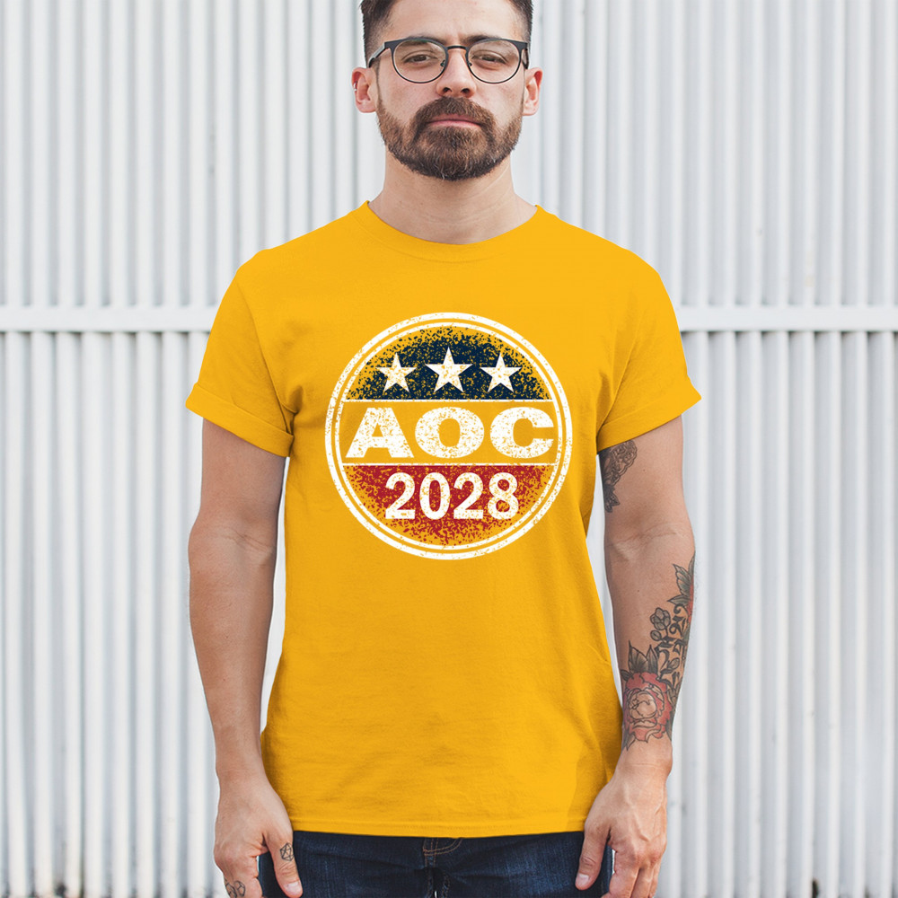 Show support for AOC 2028 with this patriotic distressed badge design. Great for progressives, rallies, events, and young political activists.