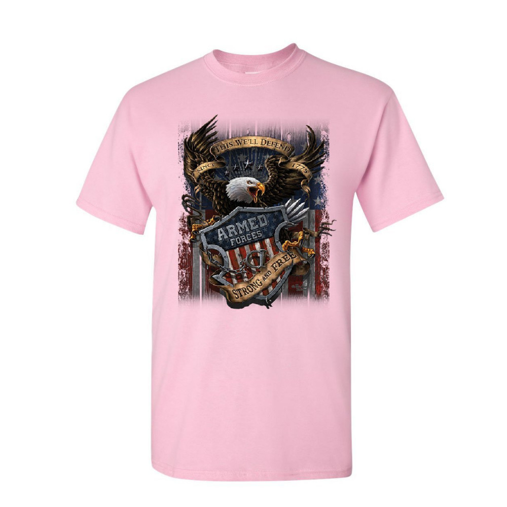 ARMED FORCES BALD EAGLE t-shirt army this we'll defend us flag mens tee shirt light pink