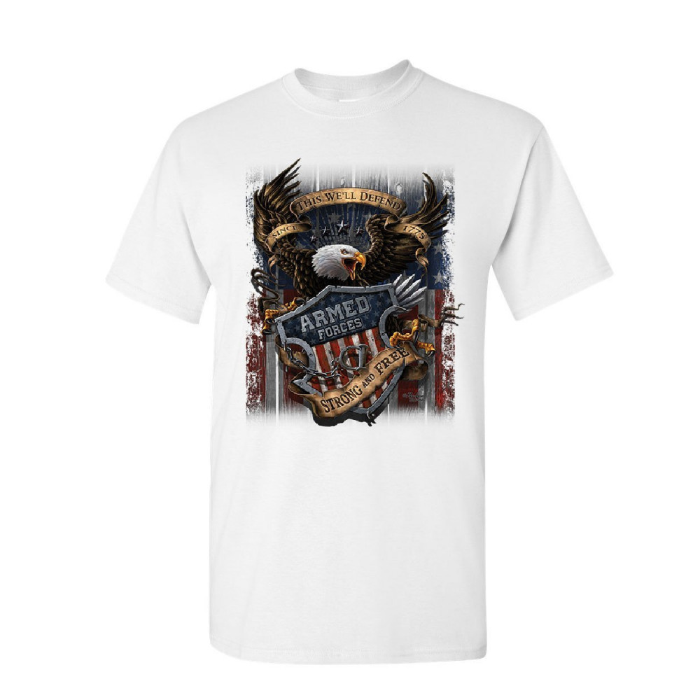 ARMED FORCES BALD EAGLE t-shirt army this we'll defend us flag mens tee shirt white