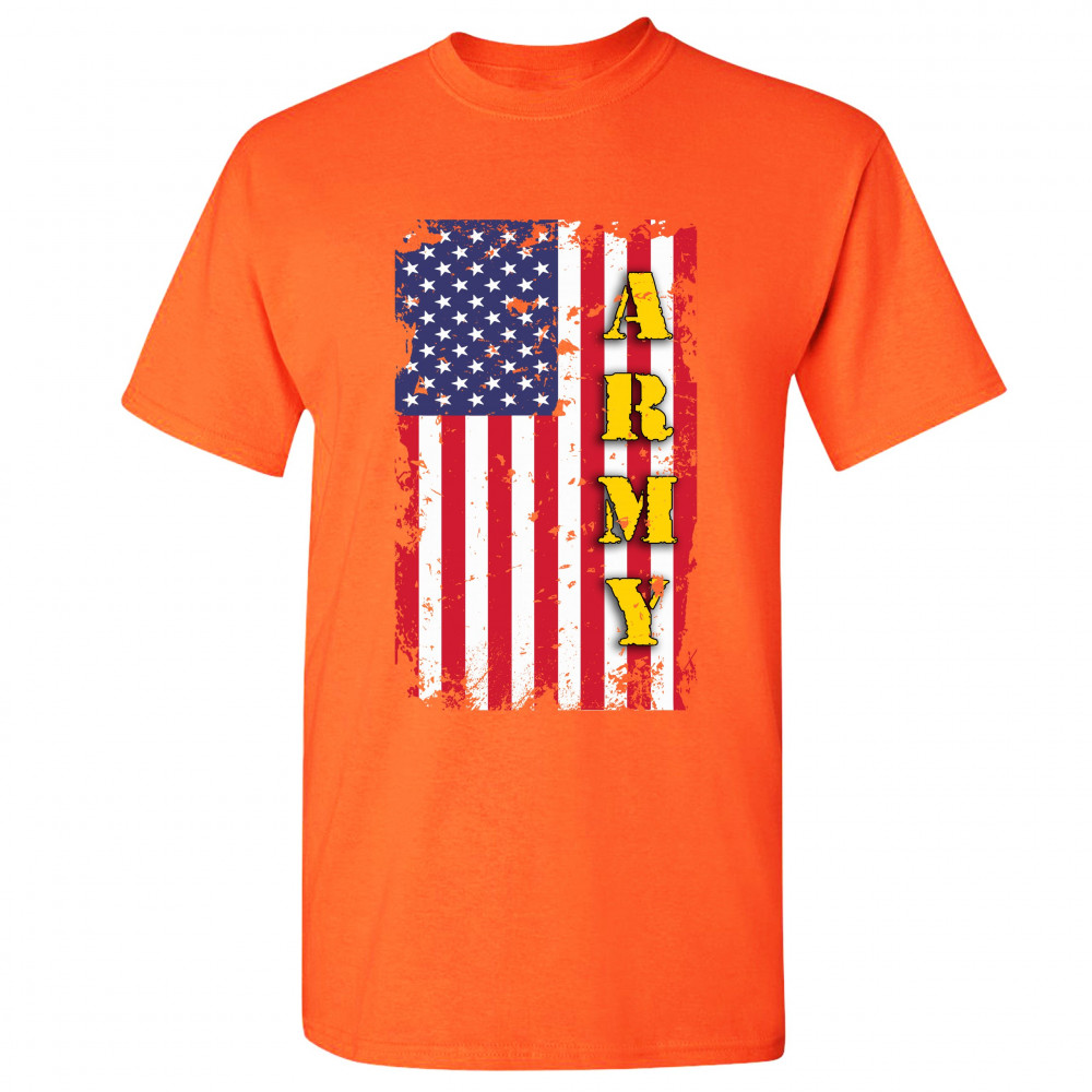 ARMY t-shirt american flag united states armed forces patriotic men's tee orange