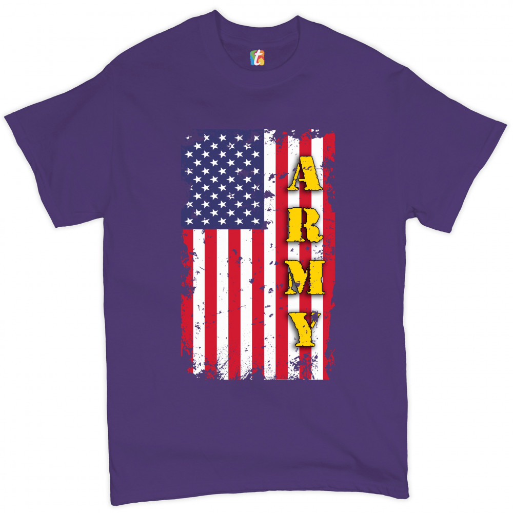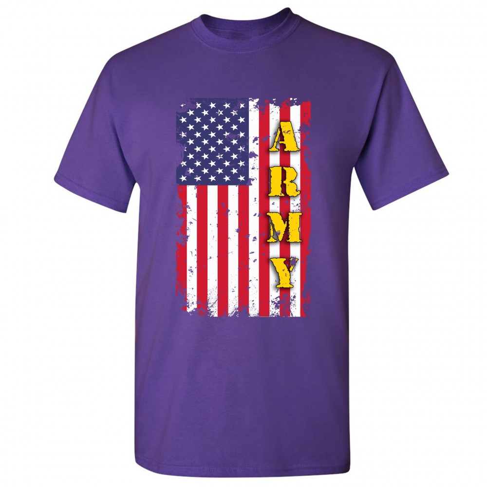ARMY t-shirt american flag united states armed forces patriotic men's tee purple