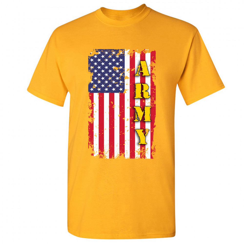 ARMY t-shirt american flag united states armed forces patriotic men's tee yellow
