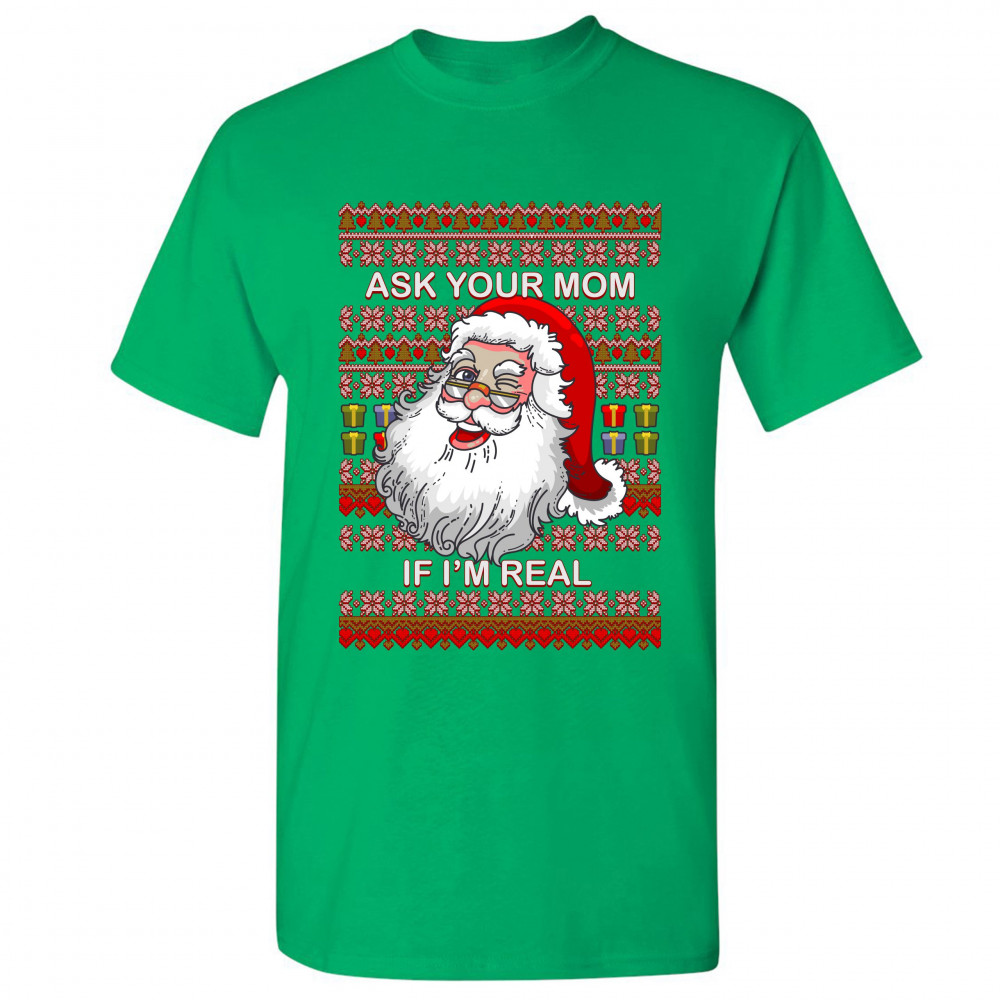 ASK YOUR MOM IF I'M REAL t-shirt ugly sweater christmas santa claus men's tee green