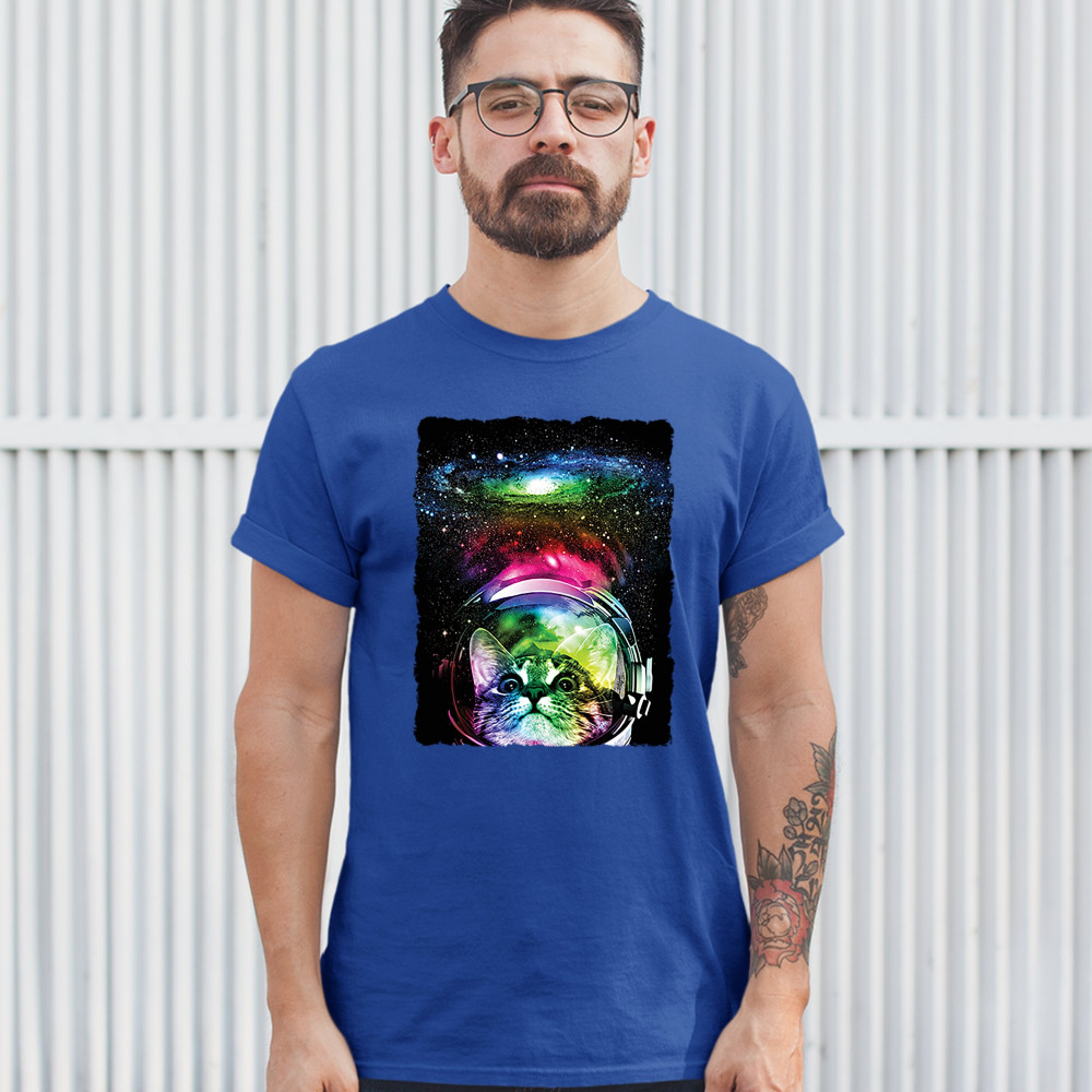 ASTRONAUT CAT t-shirt space kitty men's tee royal blue