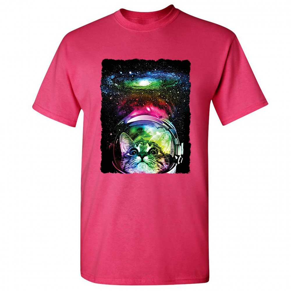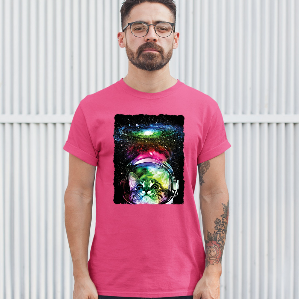 ASTRONAUT CAT t-shirt space kitty men's tee hot pink