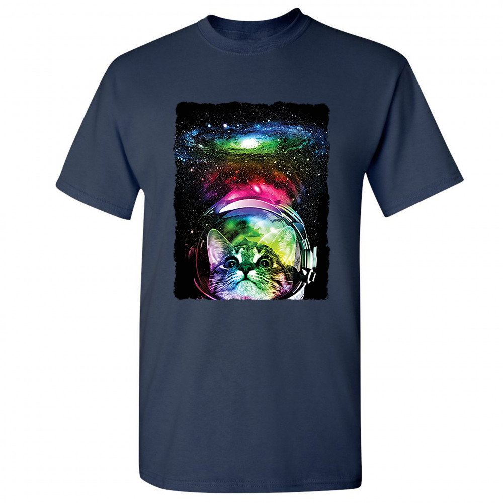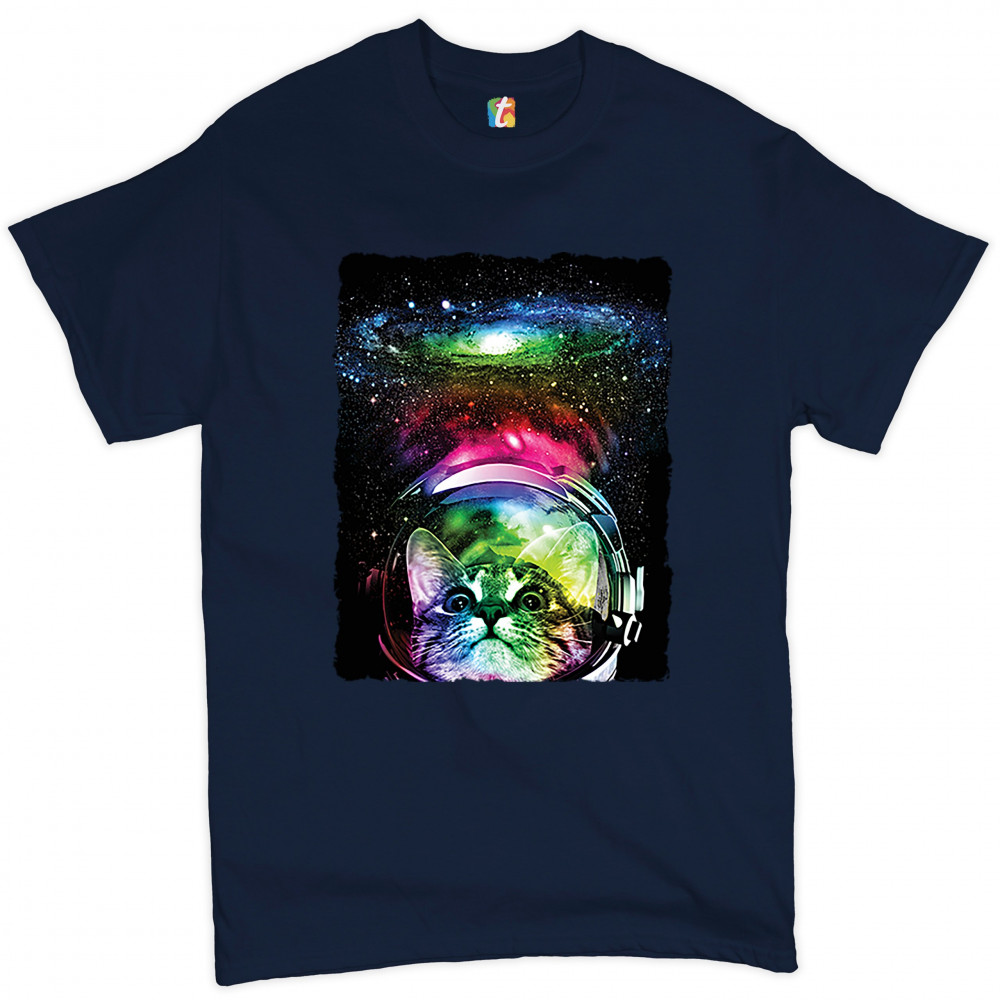 ASTRONAUT CAT t-shirt space kitty men's tee navy blue