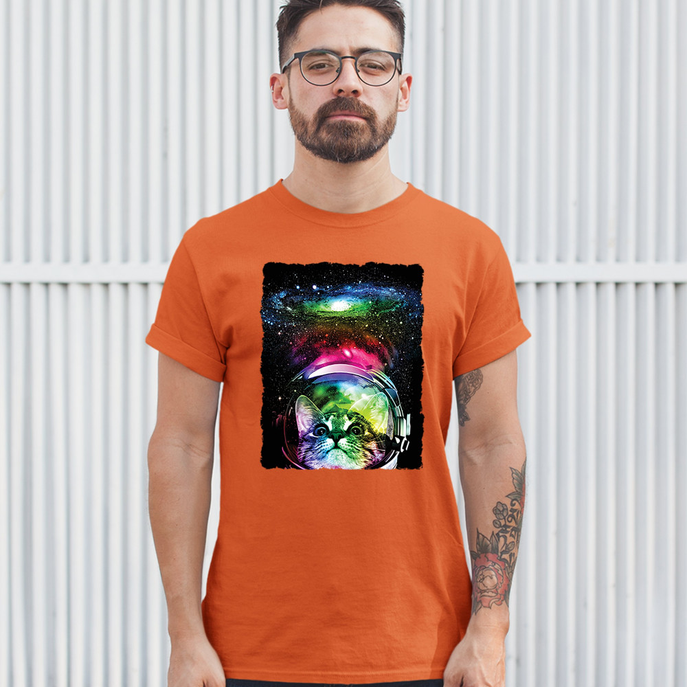 ASTRONAUT CAT t-shirt space kitty men's tee orange