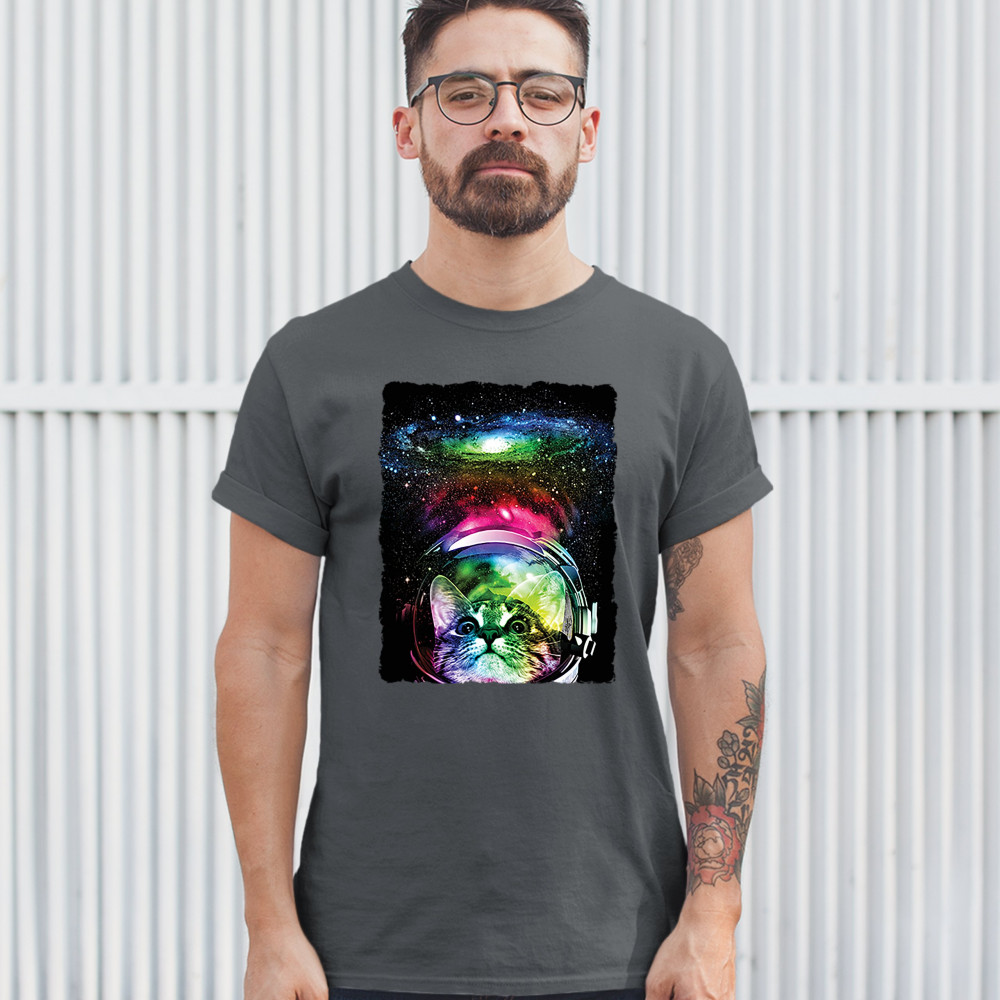 ASTRONAUT CAT t-shirt space kitty men's tee charcoal