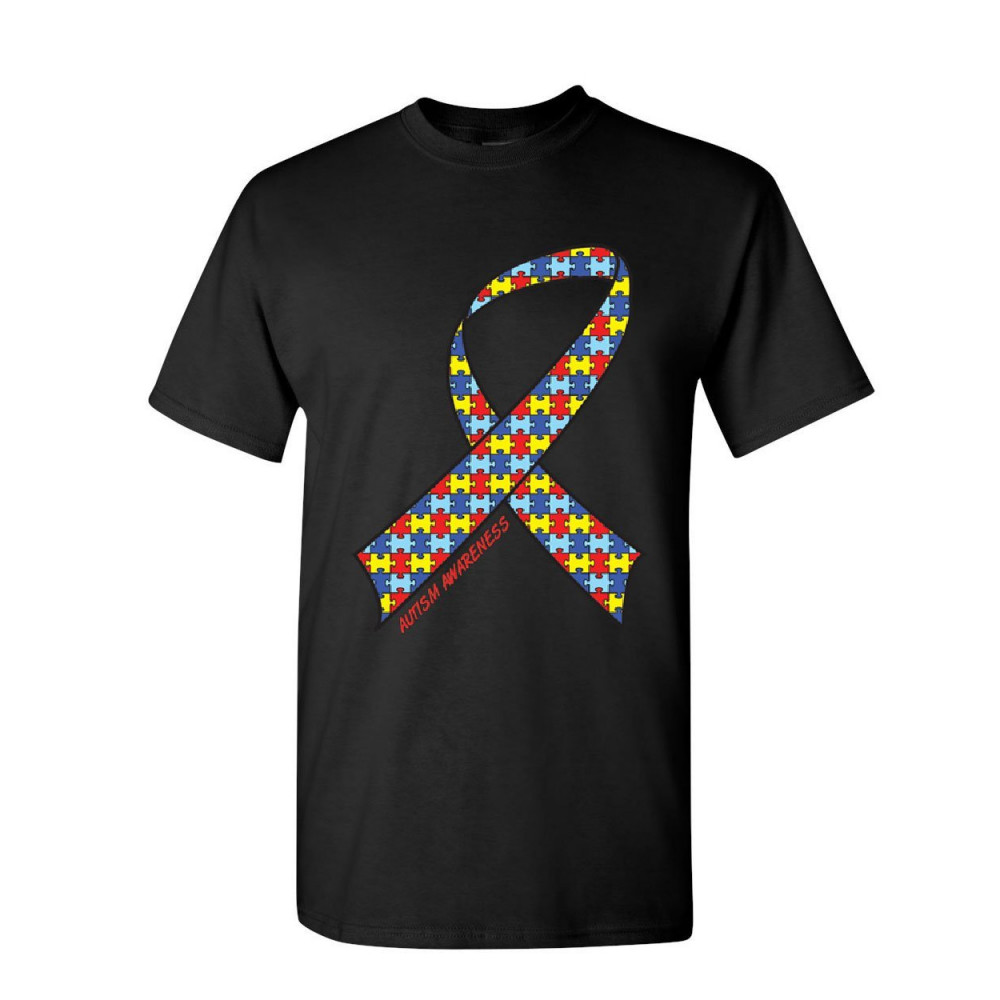 AUTISM AWARENESS RIBBON t-shirt support care love asd asperger mens tee shirt black