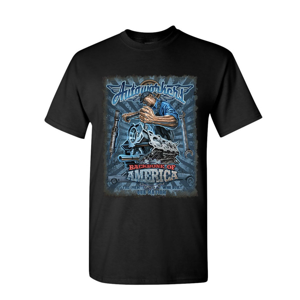 AUTOWORKERS - BACKBONE OF AMERICA autoworkers backbone of america t-shirt car motor mechanic union mens tee shirt black