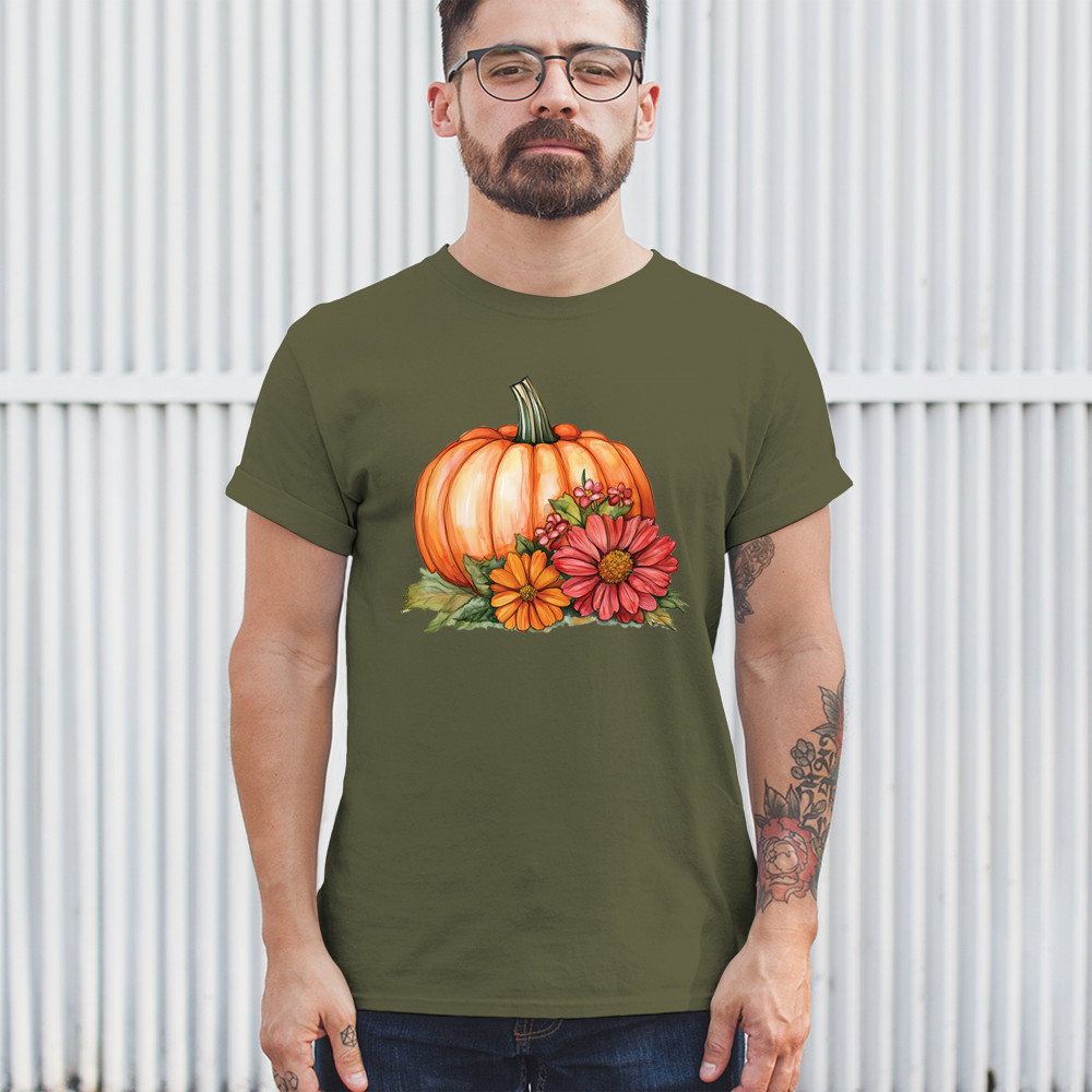 Celebrate autumn with our charming pumpkin and floral design. Perfect for seasonal decor, gifts, and showcasing your fall spirit. Ideal for Thanksgiving!