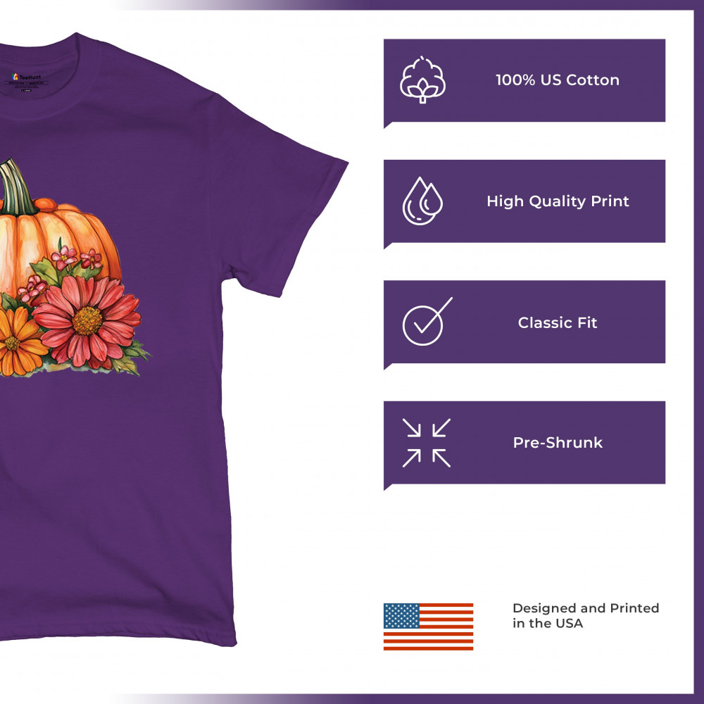 Celebrate autumn with our charming pumpkin and floral design. Perfect for seasonal decor, gifts, and showcasing your fall spirit. Ideal for Thanksgiving!