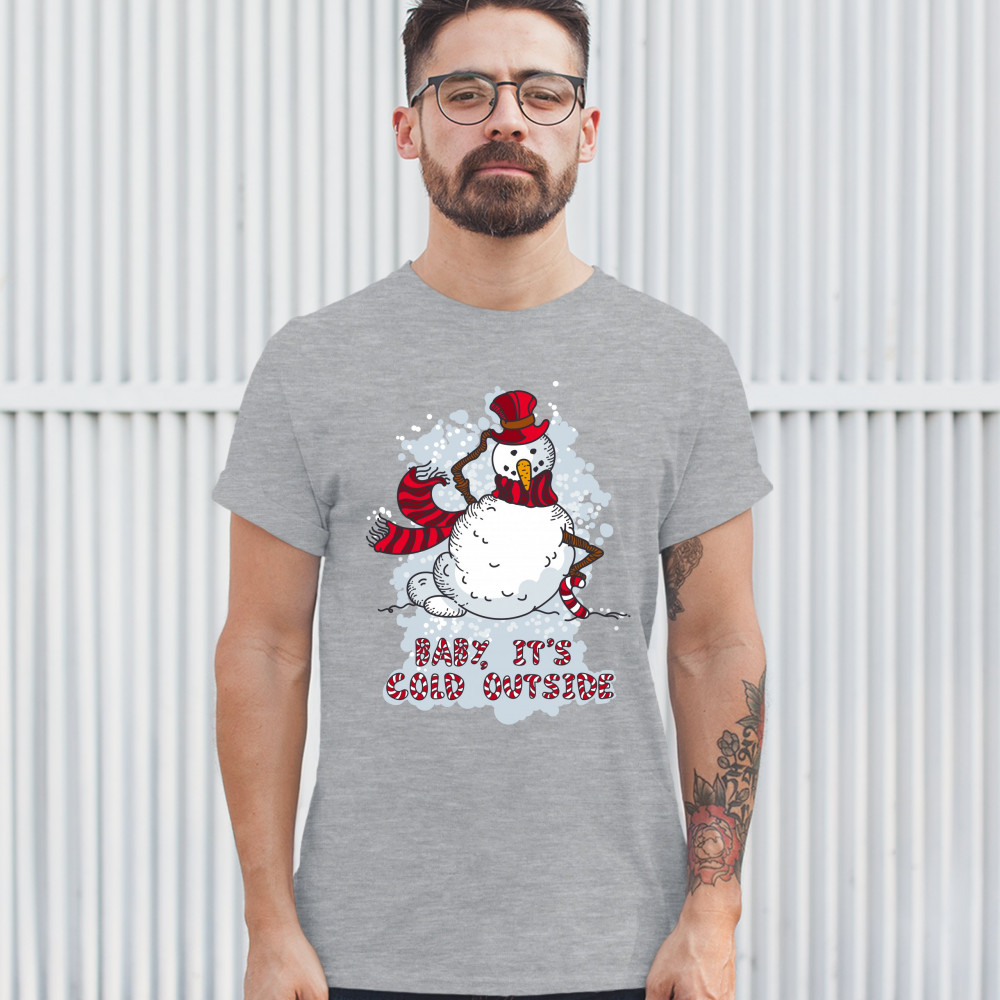 BABY, IT'S COLD OUTSIDE t-shirt merry christmas snowman candy cane men's tee gray