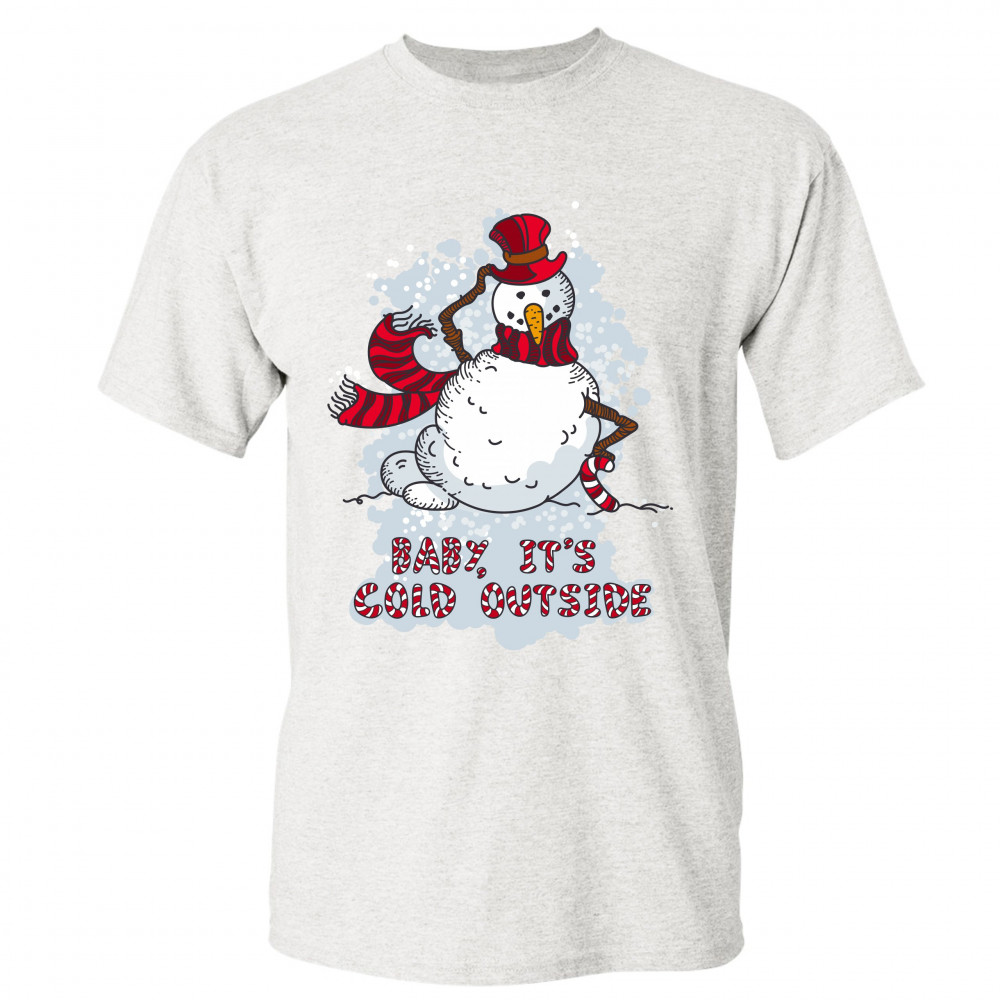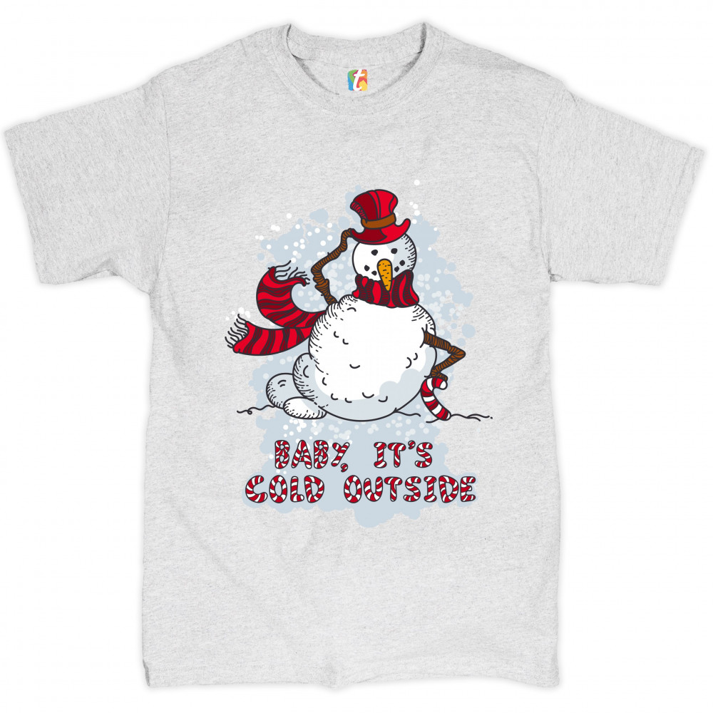 BABY, IT'S COLD OUTSIDE t-shirt merry christmas snowman candy cane men's tee ash gray