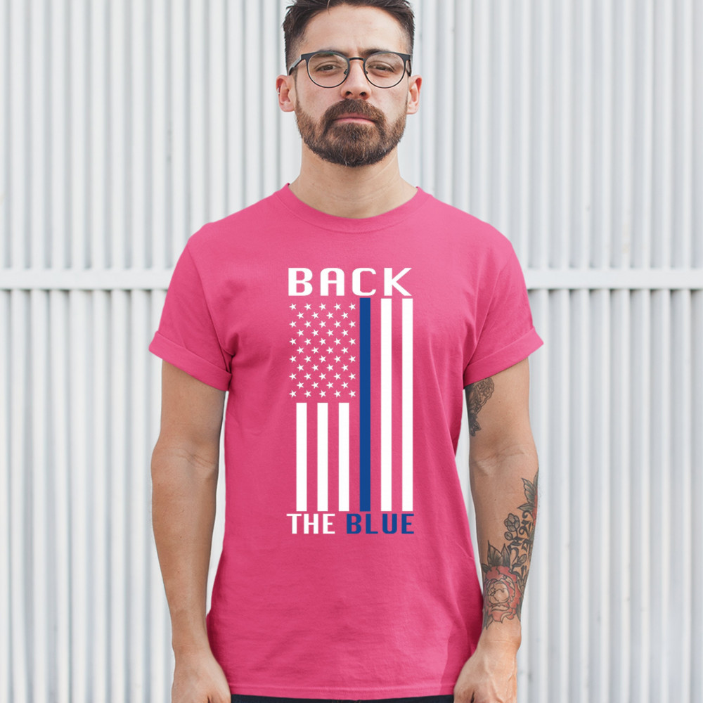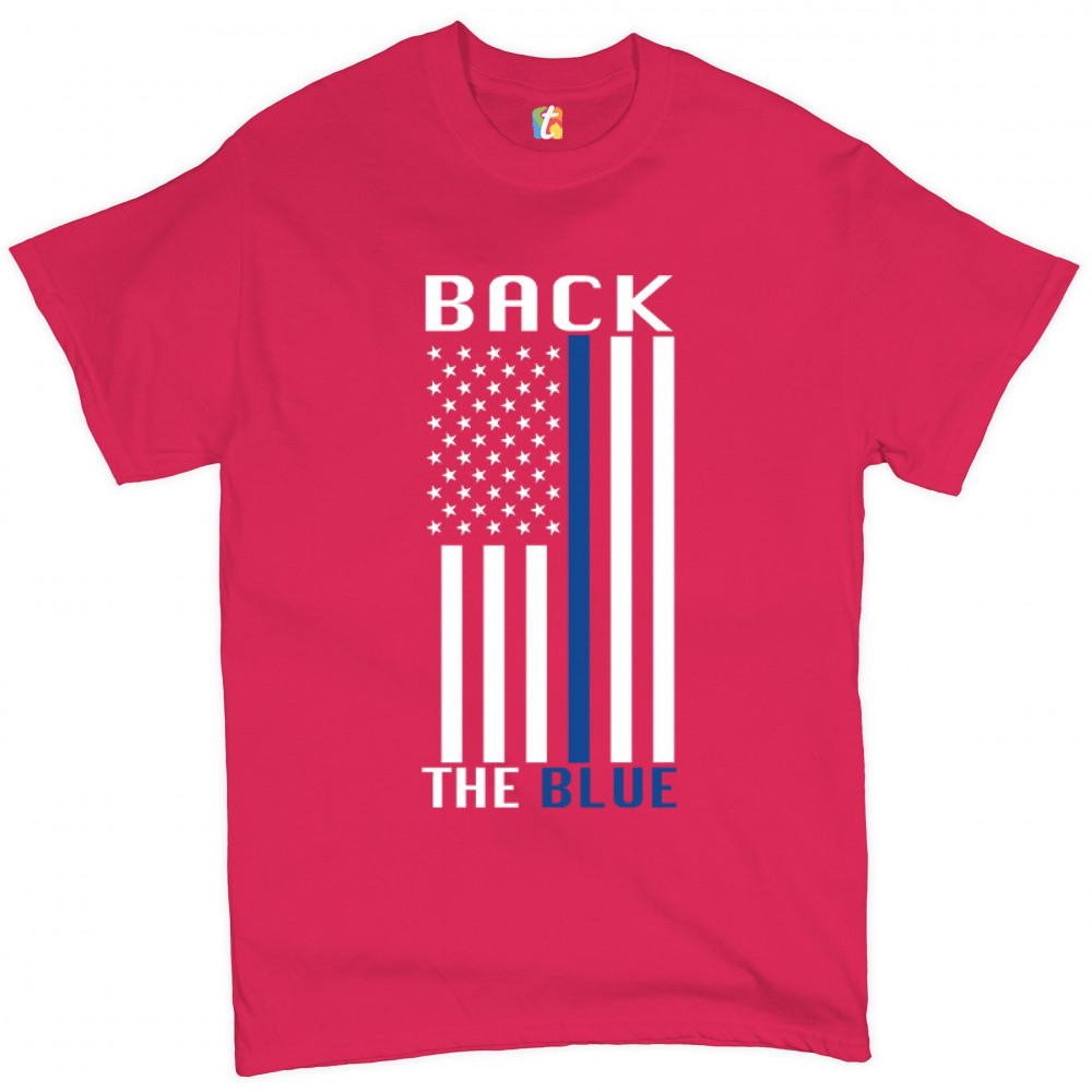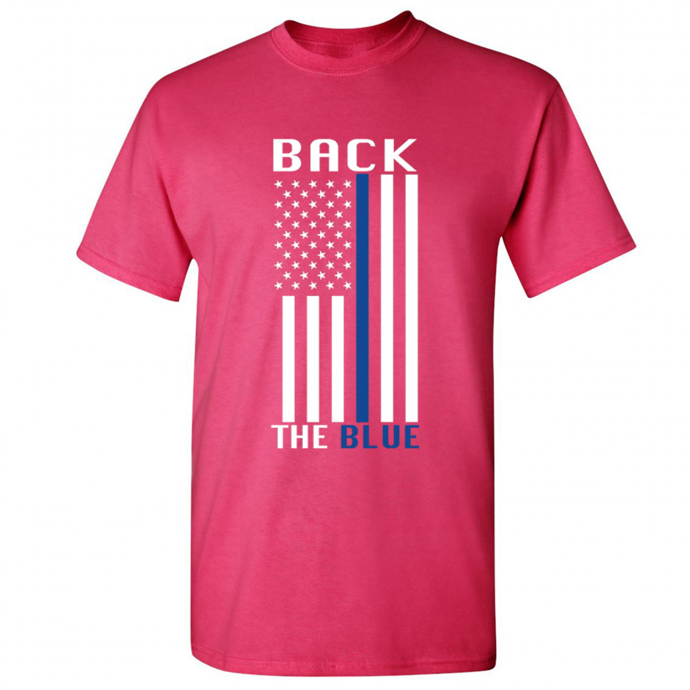 BACK THE BLUE AMERICAN FLAG t-shirt police law enforcement men's tee hot pink