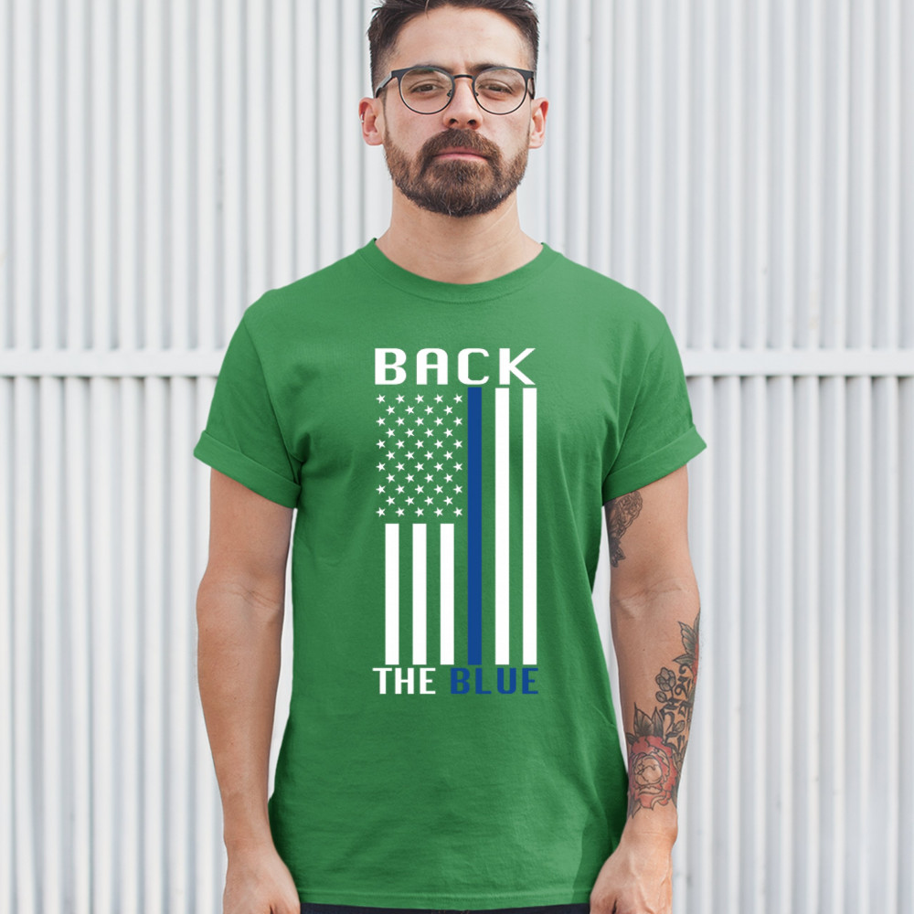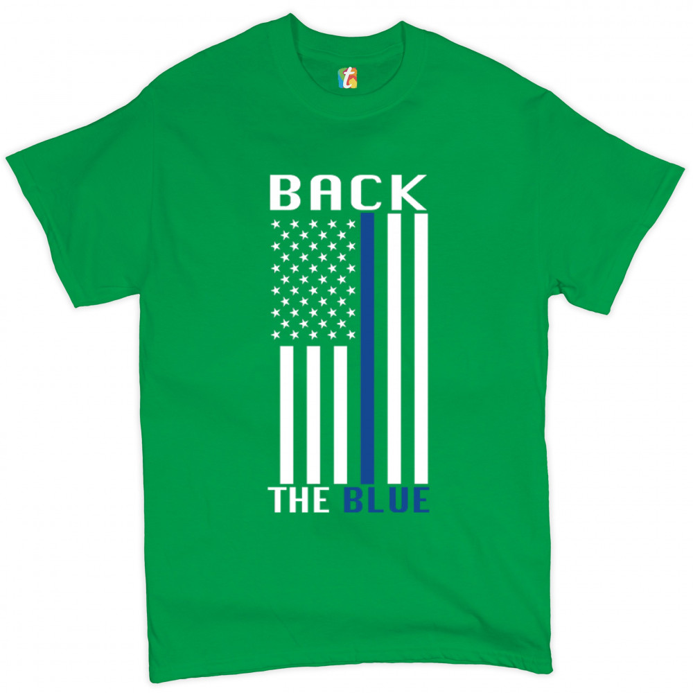 BACK THE BLUE AMERICAN FLAG t-shirt police law enforcement men's tee green
