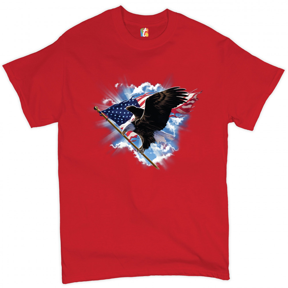 BALD EAGLE CARRYING THE AMERICAN FLAG t-shirt 4th of july patriotic men's tee red