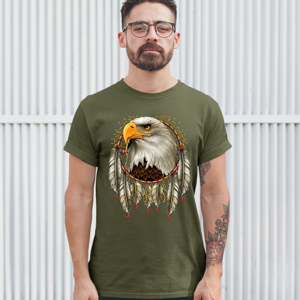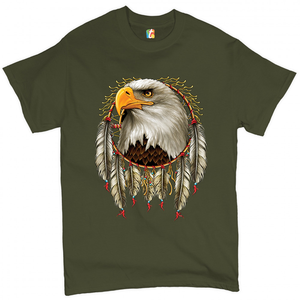 BALD EAGLE DREAMCATCHER t-shirt indigenous native american heritage men's tee military green