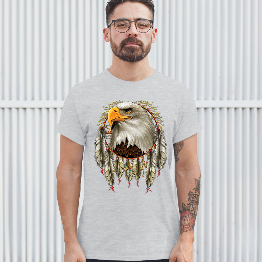 BALD EAGLE DREAMCATCHER t-shirt indigenous native american heritage men's tee ash gray